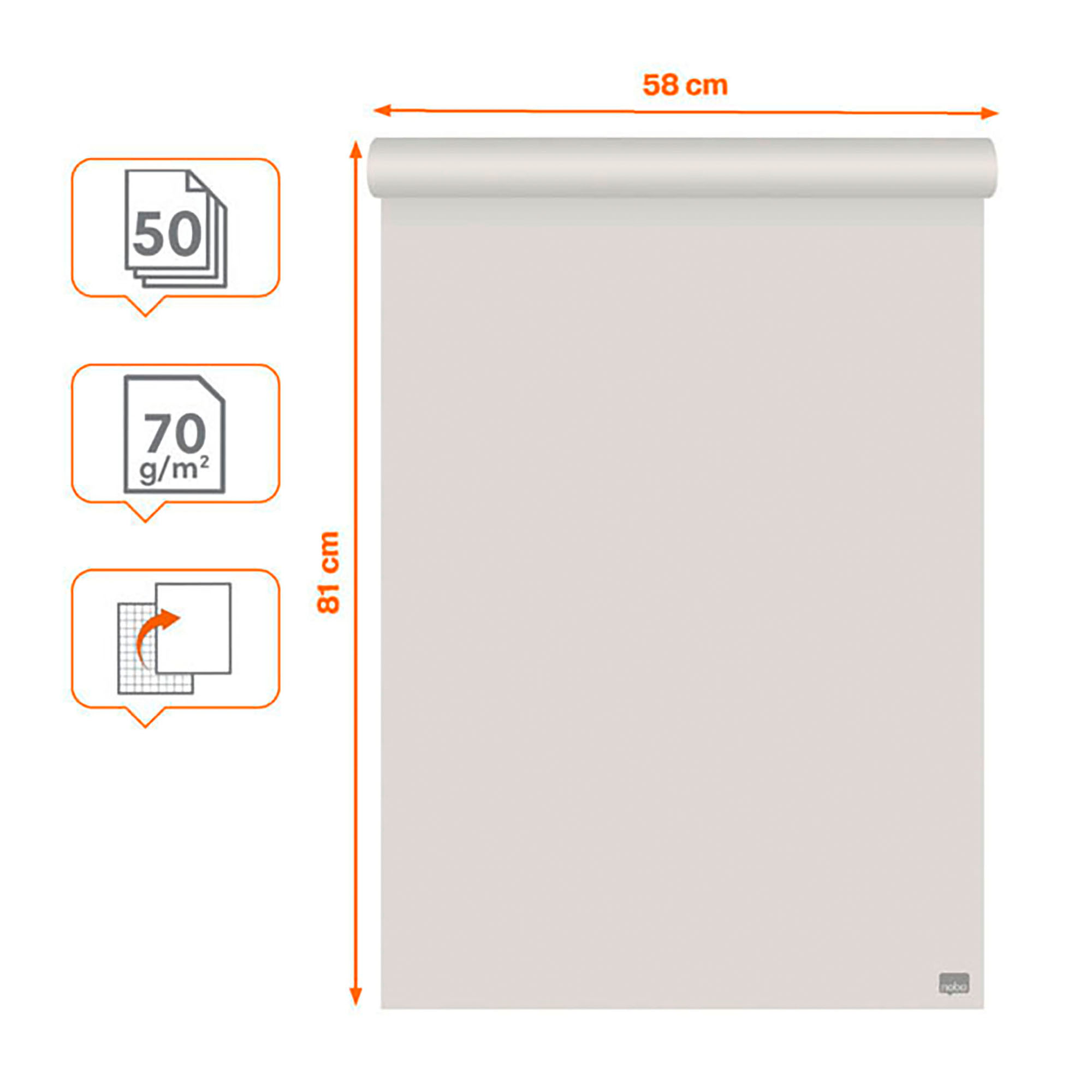 L’essentiel de vos présentations ou brainstormings est visible sur votre paperboard. Ses 50 feuilles de qualité supérieure 70 g/m² sont réversibles mais également perforées pour s’adapter à n’importe quel chevalet de conférence pour une grande flexibilité. La forte opacité accroit la qualité de l’écriture pour faire ressortir la couleur de l’encre sans qu’elle ne soit perceptible au verso. Uni d’une face et quadrillé de l’autre 50 mm, c’est un outil incontournable pour la prise de note lors de vos meetings. Certifié Nordic Swan, ce bloc est composé de papier 95% recyclé, 100% recyclable, issu des forêts locales (européennes) et imprimé avec des encres responsables (à base d’eau, sans solvant).
