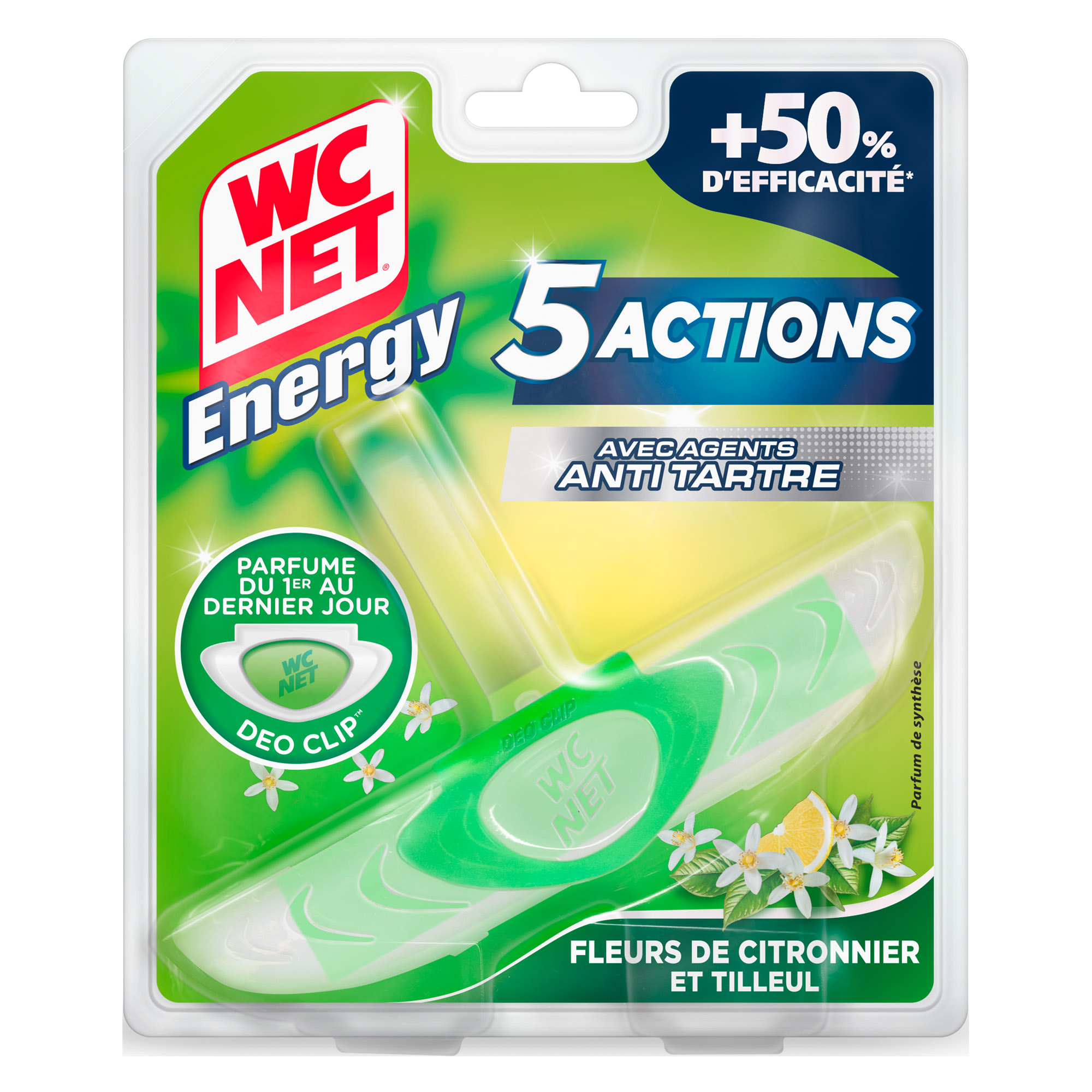 Description détailléeUn bloc surpuissant libérant une mousse super-nettoyante.5 actions pour une efficacité parfaiteAvec agents anti-tartre Système Déo clipParfum Fleurs de citronnier et Tilleul, du 1er au dernier jour
