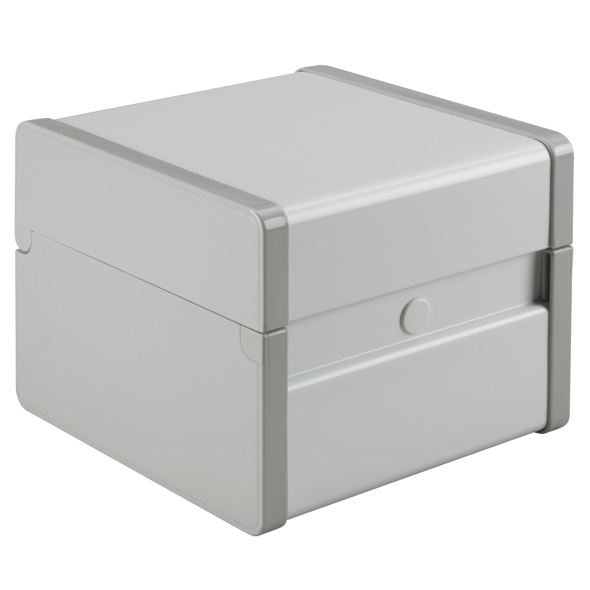Cette boîte pour fiches est disponible en 2 couleurs au choix : blanc cassé/gris ou blanc cassé/bleu. À la livraison, bénéficiez d’un intercalaire métallique réglable.