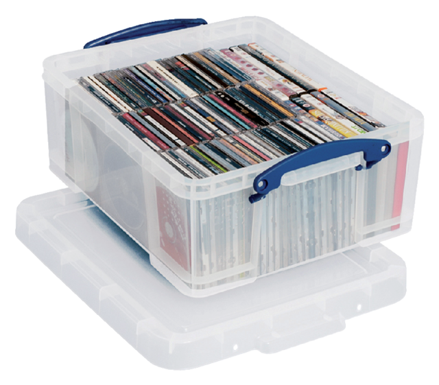Boîtes de rangement Really Useful sont parfaitement empilables, avec ou sans couvercle Résistantes aux températures extrêmes de -15°C jusqu’à +80°C Ajustements minimaux des côtés latéraux pour maximaliser l’espace de rangement, garantissant la stabilité du contenu durant le transport Fond entièrement plat et renforcé Le mécanisme de fermeture maintient la boîte et le couvercle ensemble Grâce à la boîte transparente, vous pouvez toujours voir le contenu Les boîtes de différentes dimensions sont empilables entre elles Idéal pour le rangement de 93 CD ou 44 DVD, mais aussi pour le rangement magazines en différents formats, etc.