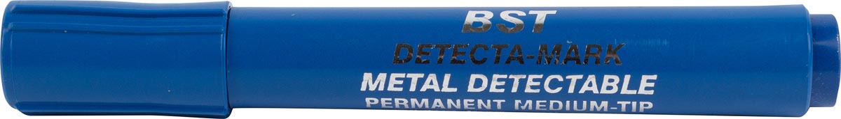 Pointe ronde Largeur d'écriture: 3 mm Convient aux industries pharmaceutiques et alimentaires En polyéthylène avec un additif non toxique pour la détection des métaux. Encre Sureflow à base d'alcool Pour écrire et marquer sur presque toutes les surfaces Support en plastique Non rechargeable Boîte de 10 pièces