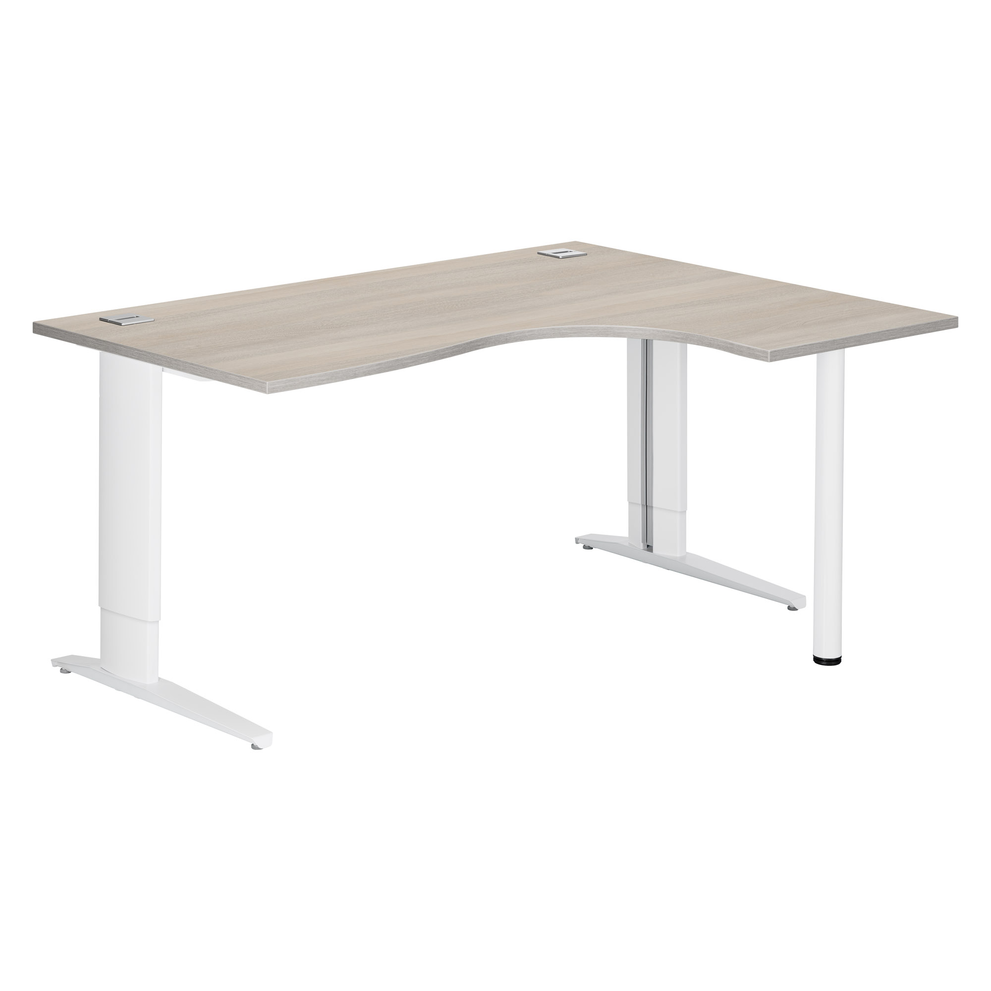 - Pieds métal en L réglables en hauteur de H 67.5 à 87.5 cm (incluant le plateau) et poutre métal sous plateau pour plus de solidité et stabilité. Crantage et réglage possible tous les millimètres.