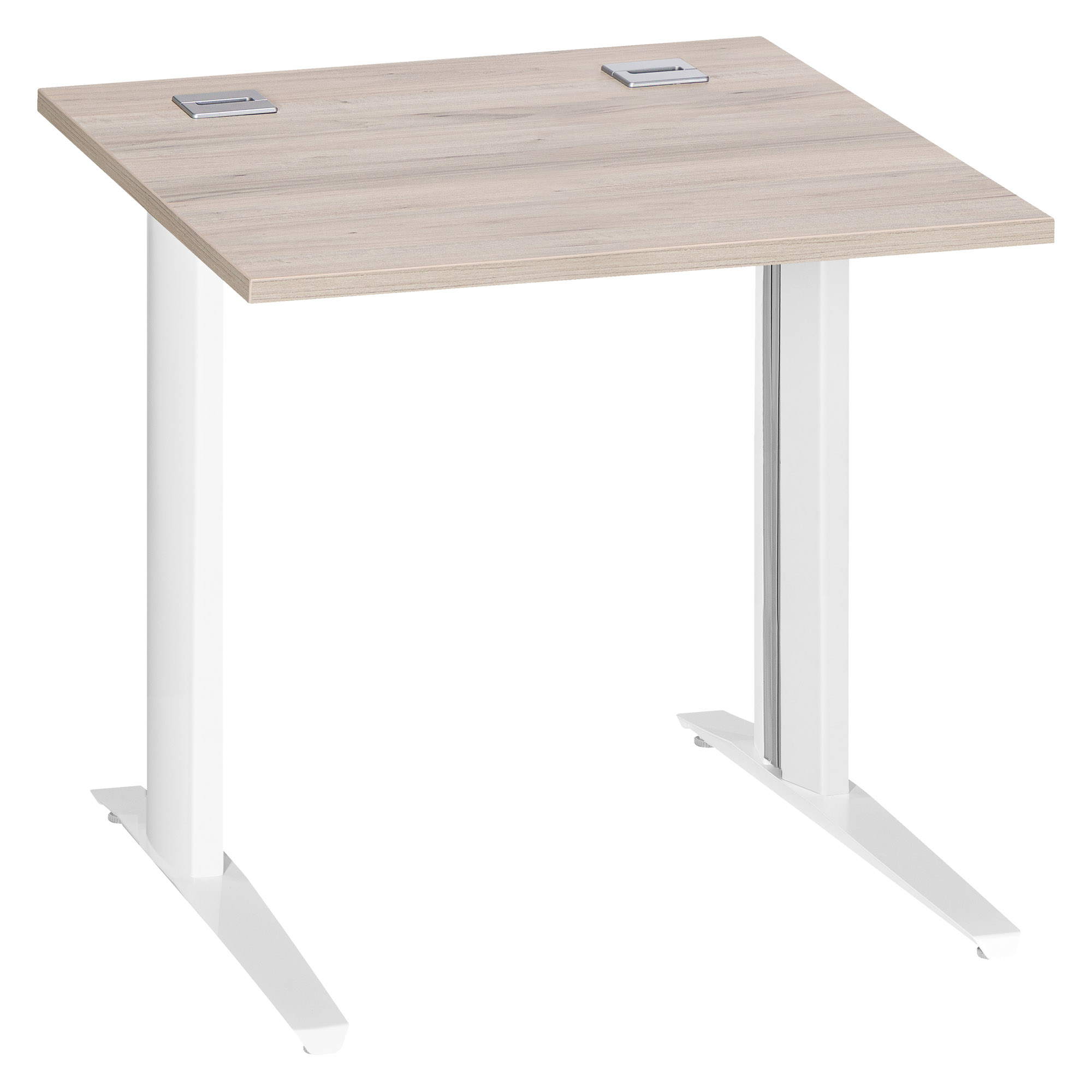 Pieds métal en L réglables en hauteur de H 67.5 à 87.5 cm (incluant le plateau) et poutre métal sous plateau pour plus de solidité et stabilité. Crantage et réglage possible tous les millimètres.