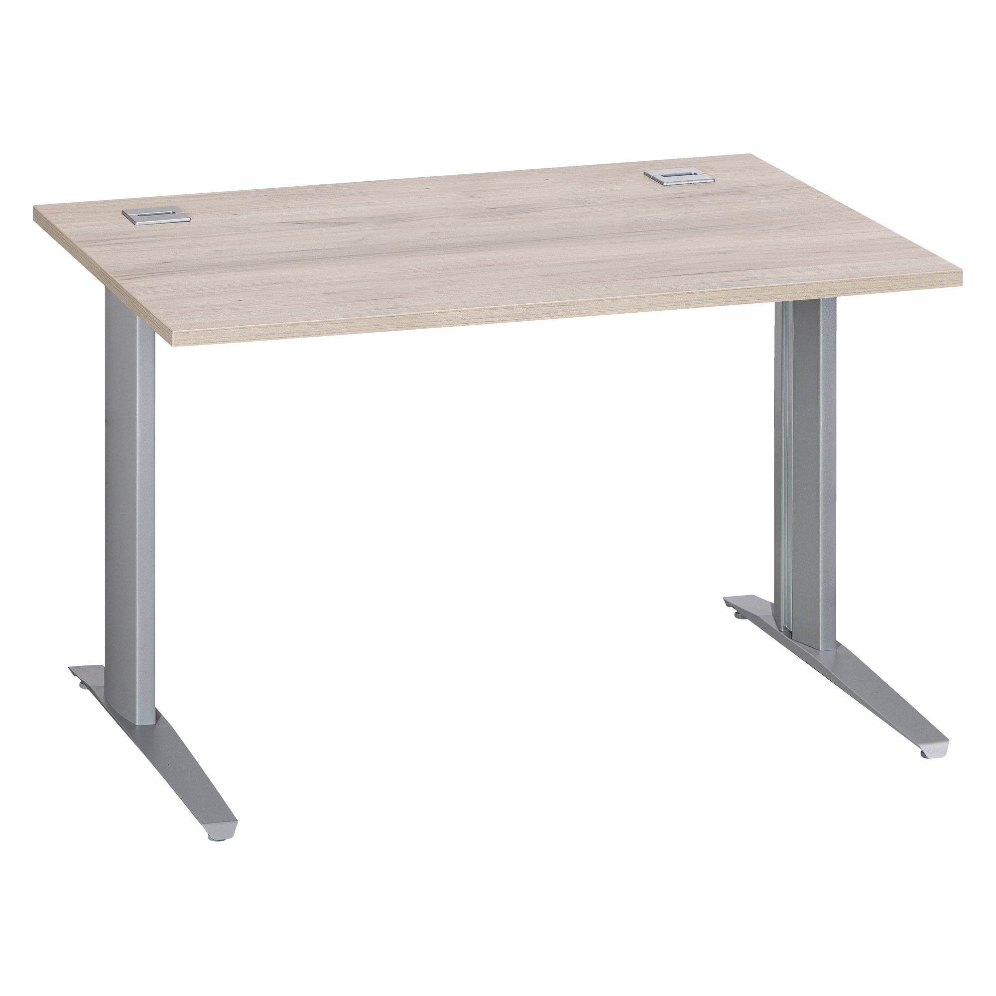 Pieds métal en L réglables en hauteur de H 67.5 à 87.5 cm (incluant le plateau) et poutre métal sous plateau pour plus de solidité et stabilité. Crantage et réglage possible tous les millimètres.