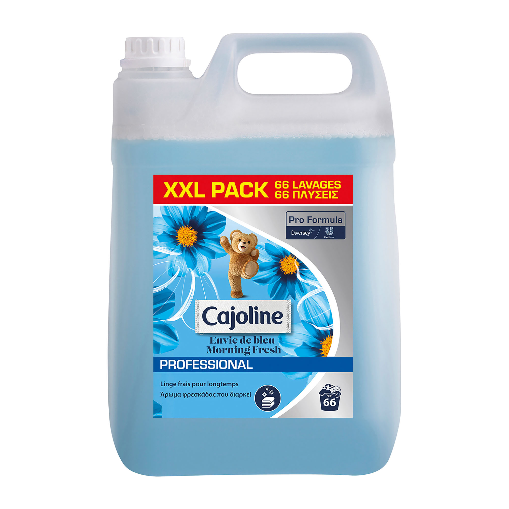 Cajoline Professionnel Envie de bleu est un assouplissant concentré pour tous les textiles qui s’utilise au dernier rinçage dans tous les lave-linge à chargement manuel. Sa formule concentrée permet d’avoir une meilleure efficacité ainsi que des résultats irréprochables.