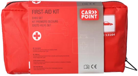 DIN 13164:2022 Sac rouge pratique avec fermeture éclair, ft 23,5 x 12,5 x 6 cm Contenu: - 1 x pansement autocollant 2,5 cm x 5 m - 4 x pansements autocollants 10 x 6 cm - 2 x pansements pour le bout des doigts 76 x 45 mm - 2 x pansements pour les doigts 12 x 2 cm - 2 x pansements 76 x 19 mm - 4 x pansements 76 x 25 mm - 1 x kit de premiers secours, petit modèle 6 x 8 cm - 2 x kit de premiers secours, modèle moyen 8 x 10 cm - 1 x kit de premiers secours. grand modèle 10 x 12 cm - 1 x chiffon à pansement 60 x 80 cm - 4 x gants jetables en vinyle, grande taille - 2 x bandes de contention 6 cm x 4 m - 3 x bandes de contention 8 cm x 4 m - 1 x couverture de secours 160 x 210 cm or/argent - 3 x compresses pour les blessures 10 x 10 cm (par 2) - 1x bande triangulaire 96 x 96 x 136 cm - 1 x paire de ciseaux de premiers secours 15 cm - 2 x lingettes nettoyantes 10 x 12 cm - 1 x manuel de premiers secours - 2 x Masque de protection pour le visage
