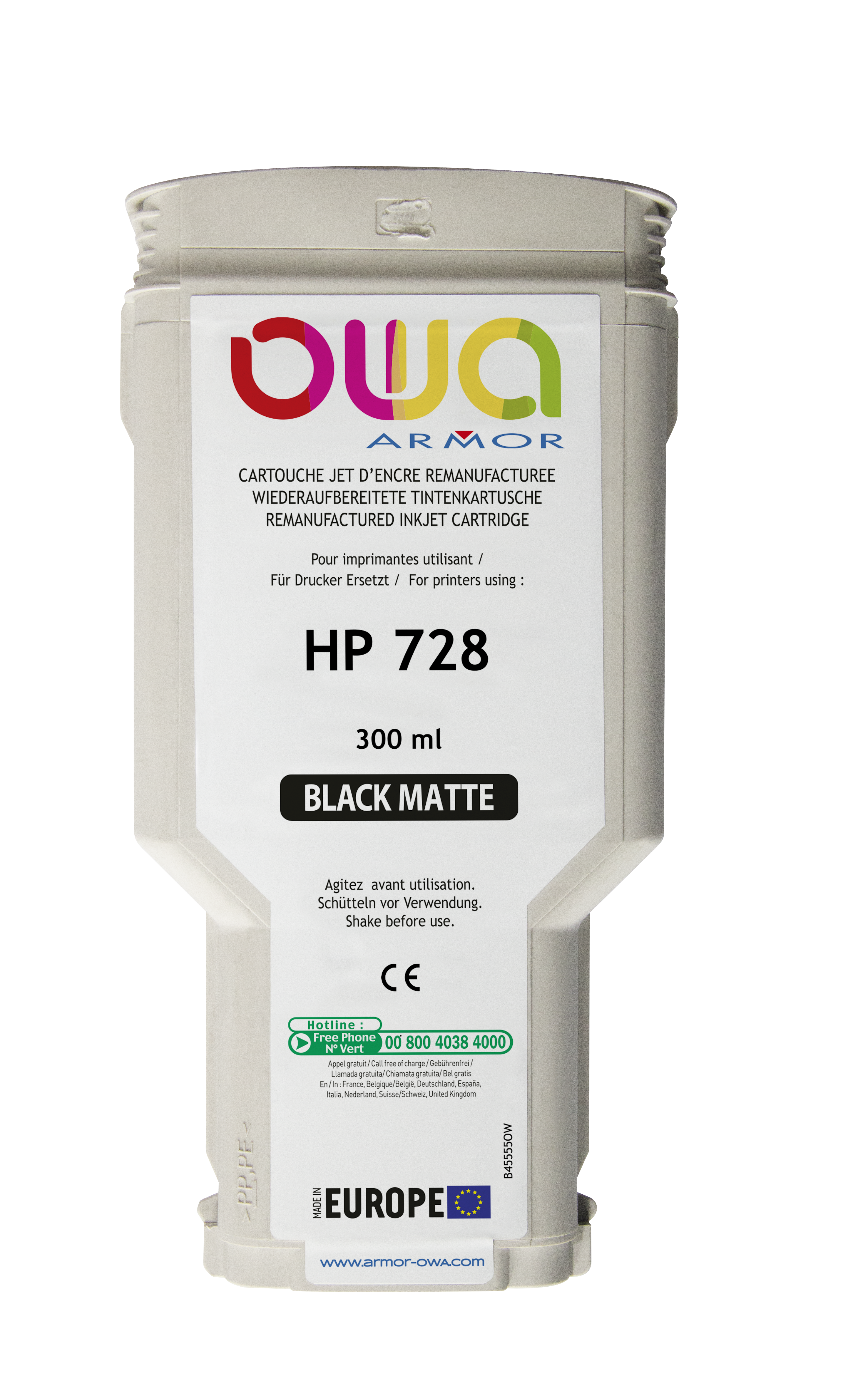 Autres cartouches avec les mêmes compatibilitésCartouche d'encre traceur remanufacturée OWA - standard - Cyan - pour HP 728à partir de189 € htCartouche d'encre traceur remanufacturée OWA - standard - Magenta - pour HP 728à partir de189 € htCartouche d'encre traceur remanufacturée OWA - standard - Jaune - pour HP 728à partir de189 € htCartouche d'encre traceur remanufacturée OWA - standard - Noir Mat - pour HP 728à partir de189 € htCartouche HP728 Haute Capacité Couleurs séparées pour imprimante jet d'encre54 avisà partir de250 € htCartouche d'encre HP 728 designjet originale - encre à colorants 130 ml - couleurs séparées54 avisà partir de127 € ht