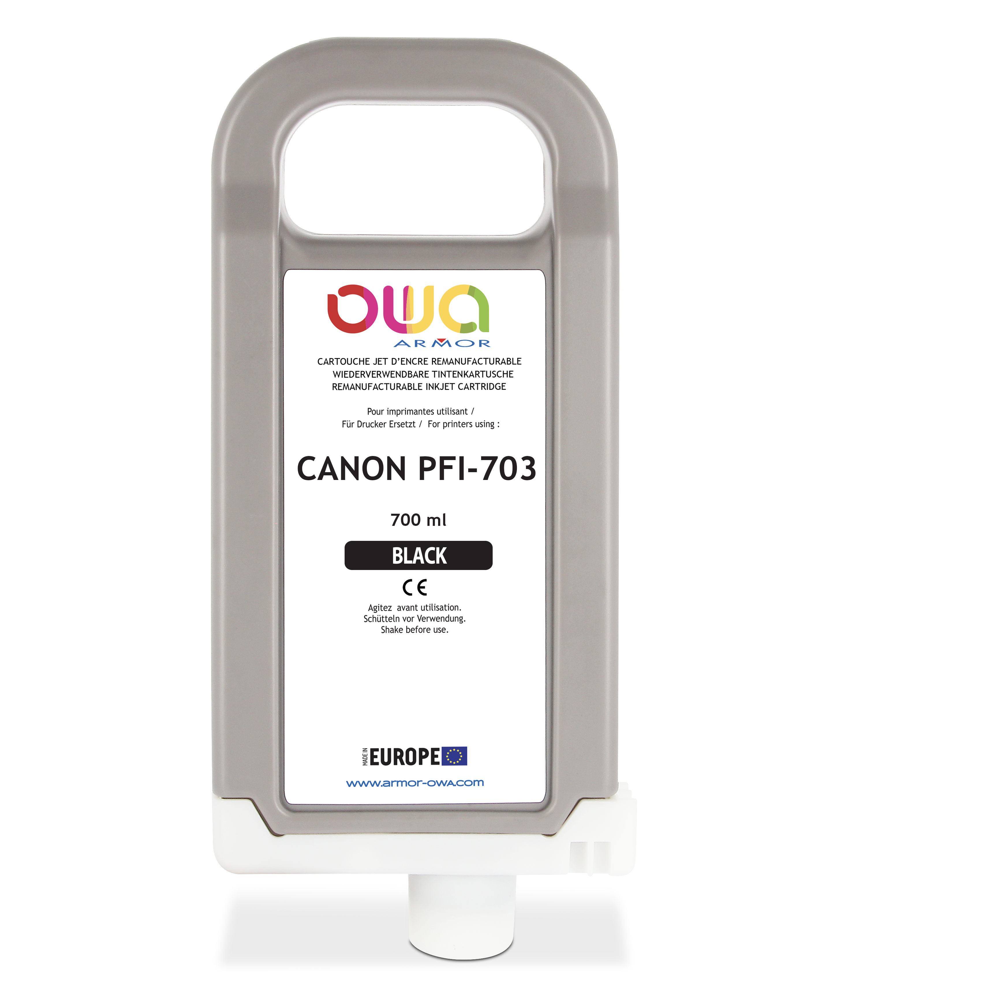 Autres cartouches avec les mêmes compatibilitésCartouche d'encre traceur remanufacturable OWA - standard - Noir Mat - pour CANON PFI-703 MBKà partir de335 € htCartouche d'encre traceur remanufacturable OWA - standard - Noir - pour CANON PFI-703 BKà partir de335 € htCartouche d'encre traceur remanufacturable OWA - standard - Cyan - pour CANON PFI-703 Cà partir de335 € htCartouche d'encre traceur remanufacturable OWA - standard - Magenta - pour CANON PFI-703 Mà partir de335 € htCartouche d'encre traceur remanufacturable OWA - standard - Jaune - pour CANON PFI-703 Yà partir de335 € ht