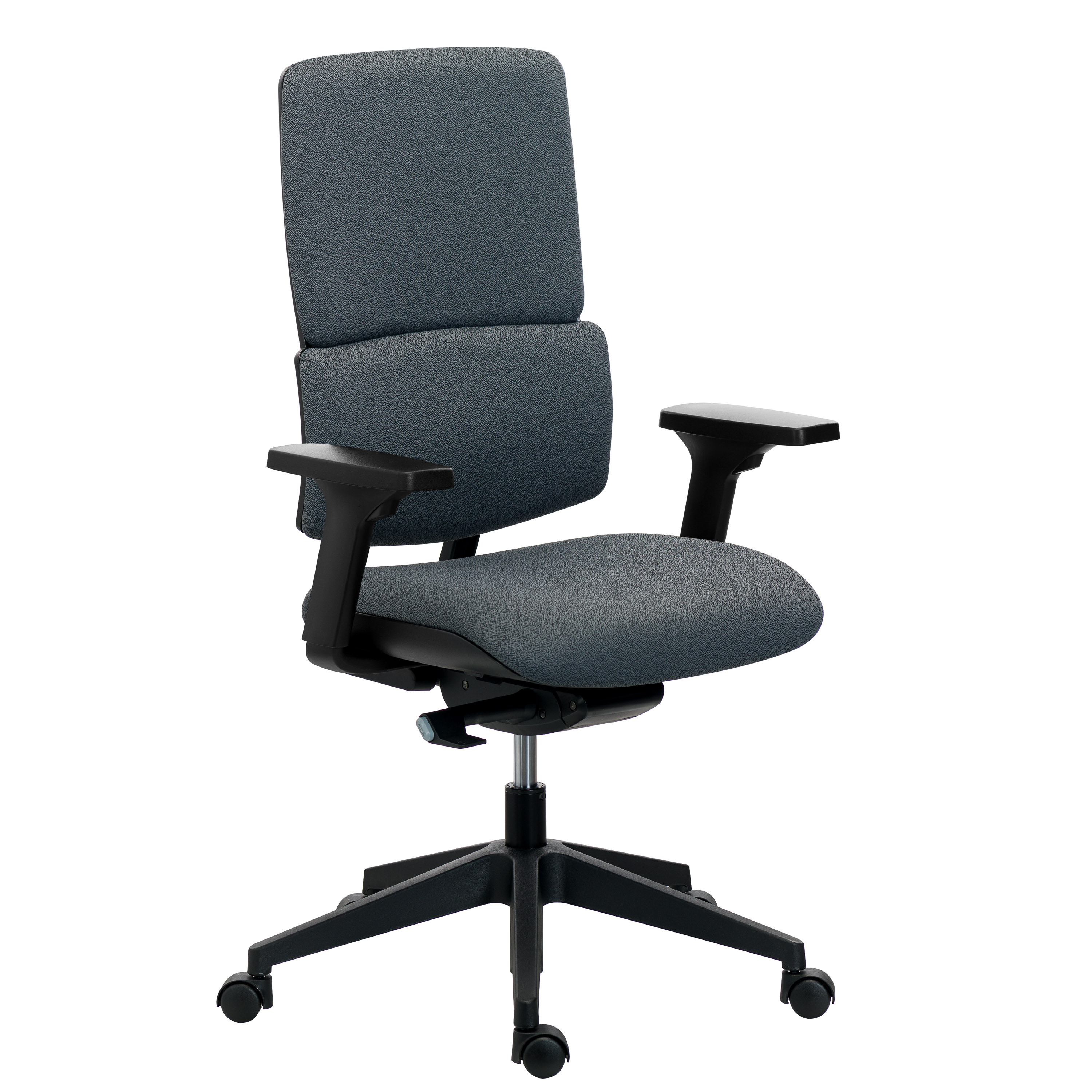 - En s’appuyant sur un mécanisme auto régulé synchrone, la hauteur de l’assise est réglable de 44 à 52 cm.