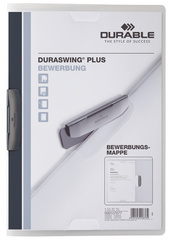 La chemise DURASWING PLUS est dotée de languettes poinçonnées qui permettent de maintenir les feuilles en place, assurant ainsi un classement organisé et sécurisé. De plus, elle est équipée d'un clip en plastique pivotant latéralement, qui facilite la manipulation et l'ajout de documents.