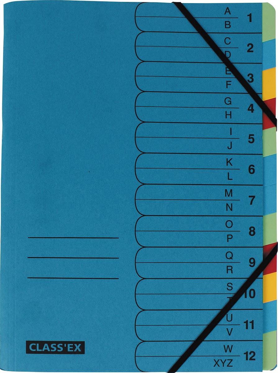 Description détailléePour ft A4 (24,5 x 31,8 cm). En carton recyclé de 450 g/m². Avec index alphabétique de A à Z et numérotation de 1 à 12. Avec fermeture à élastiques. Couleur: bleu. Onglets en couleurs assorties. Certifié Ange Bleu.