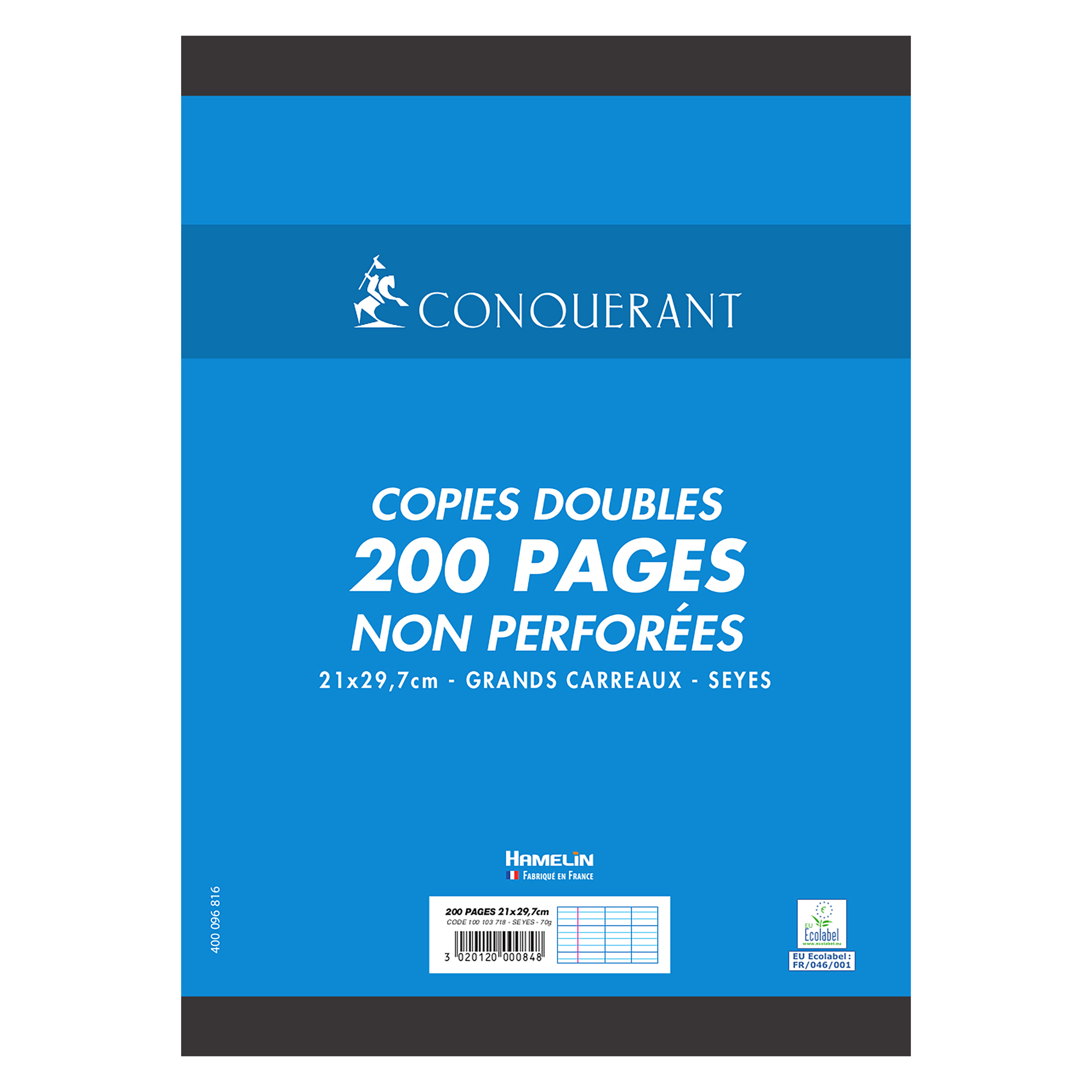 Toujours utiles les copies doubles Conquérant 7, une fourniture intéressante pour vos prises de notes, en cours, au bureau... Elles vous sont proposées en papier blanc, 70 g avec une réglure imprimée Seyès, grands carreaux.