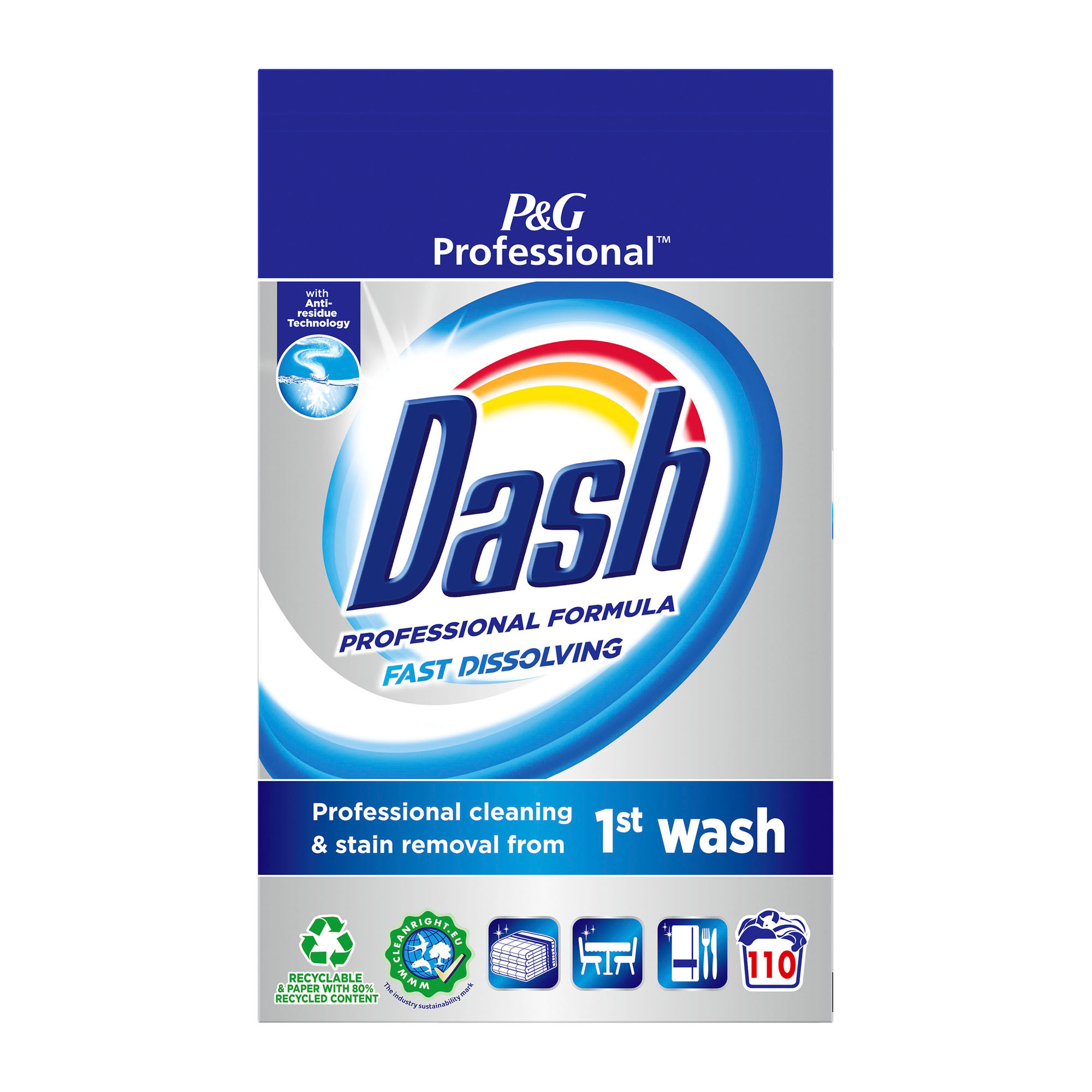 Description détailléeBlanc éclatant, pouvoir nettoyant en action. Détergent total pour une finition irréprochable pour tous les types de taches et de tissus. Également actif à basse température et sans pré-lavage. Parfum frais. Formule concentrée - 110 doses.