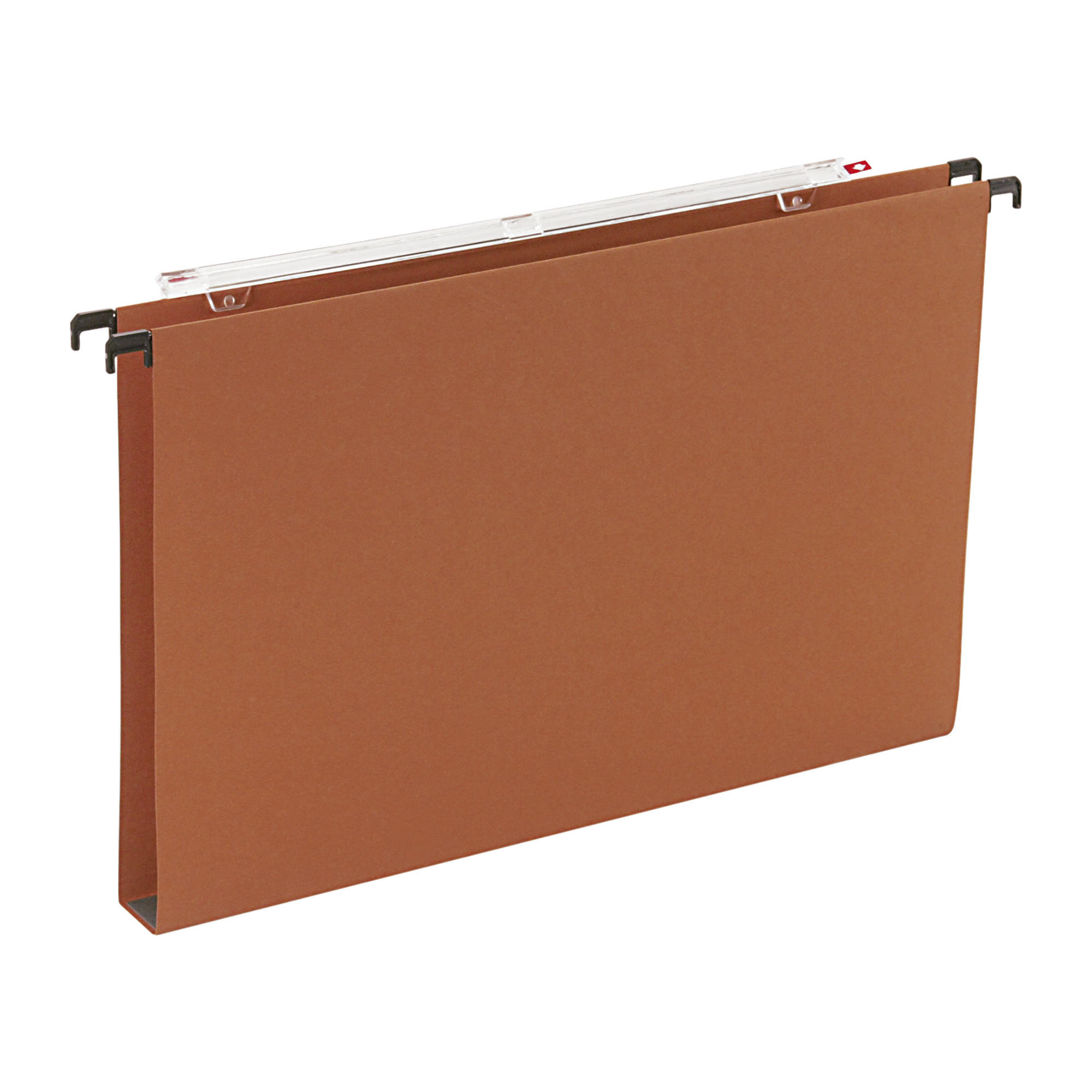 Dossier suspendu tiroirs entr'axe 39 cm fond U 30 mm Orange. Format 36,5 x 24,5 cm . Tringles de suspension en fil d' acier avec crochets plastique. Porte etiquettes a effet loupe permettant la mise en continue des dossiers par volet d' agrafage. En boite de 25 piéces avec planche etiquettes.