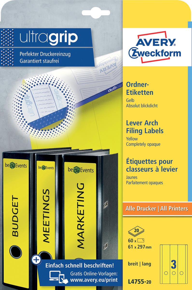 Description détaillée61 x 297 mm, long/large, trou de préhension, pour imprimanteà jet d'encre, laser, laser de couleur et photocopieusecontenu: 60 étiquettes sur 20 feuilles A461,0 x 297,0 mm