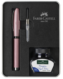 Description détailléeCorps en aluminium mat, zone de préhension ergonomique avec revêtement soft laqué, clip en métal à ressort, plume en acier inoxydable, taille de plume: M, dans un étui métal contenu: 1 stylo plume, 1 convertissuer, 1 flacon d'encre