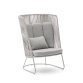 • Fauteuil avec dossier haut et accoudoirs tressés à la main en corde résistante aux rayons UV.