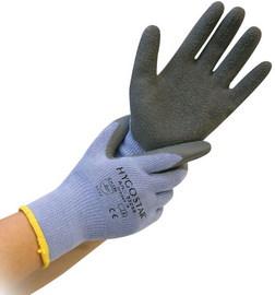 Description détailléeLilas/gris, taille: 9, gant à maille moyenne en coton, avec poignet tricoté, résiste à l'humidité, finition rugueuse, paume 1 bout des doigts revêtus, doublure intérieure chaude en paquet de 12 paires dans un sachet longueur: 250 mm