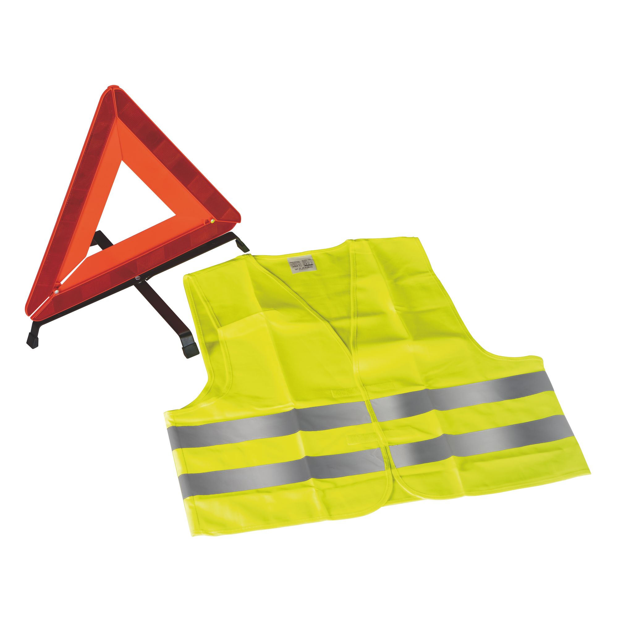 Description détailléeKit visibilité comprenant : 1 triangle de signalisation (norme CE 27R) + 1 gilet haute visibilité (norme EN 471).