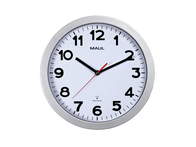 Horloge murale MAULstep RC Ø30x5cm plastqiue argent/blanc avec pile