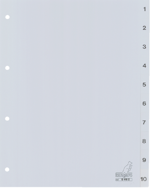 Description détaillée* Intercalaires en PP g 120 mµ. * Les onglets sont imprimés de numéros en noir d’un côté. * Emballé par set sous cellophane.