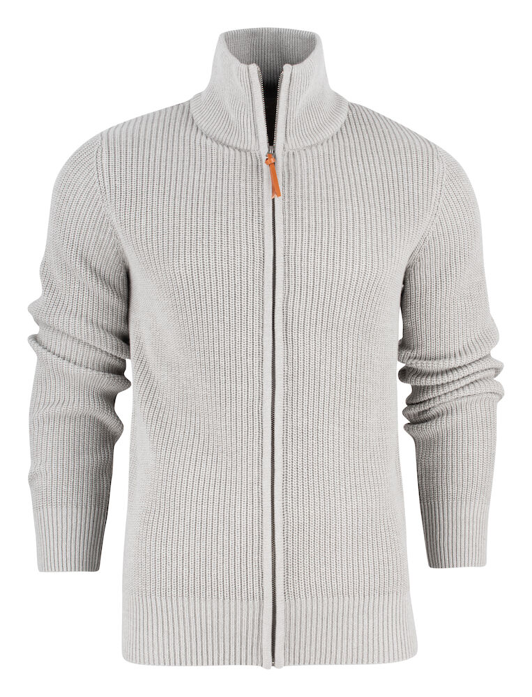 Gilet zippé en maille jersey. Fermeture éclair avec tire-zip en cuir. Coudières lisses tricotées jersey. Bord-côte au col, aux poignets et au bas du pull. 50% coton 50% acrylique
