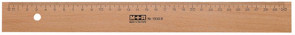 Optez pour la précision et la qualité avec la règle en bois M+r, d'une longueur de 300 mm, conçue en hêtre et dotée d'un insert métallique.