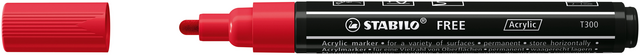 * Sortez de votre zone de confort et osez créer avec les marqueurs peinture STABILO FREE Acrylic! * Dessinez, coloriez, personnalisez sans limites, sur de nombreuses surfaces (du papier à la pierre en passant par la céramique, le cuir, le tissu, le métal, le verre ou le bois). * Les marqueurs STABILO FREE Acrylic T300 sont dotés d'une pointe ogive amovible de 2-3mm, qui peut être retirée et retournée pour utiliser les 2 extrémités et prolonger ainsi la durée de vie du marqueur. * Le marqueur est facile à utiliser : * 1. Secouez vigoureusement le stylo fermé pendant 30 secondes avec le capuchon fermé jusqu'à ce que les billes à l'intérieur bougent librement. Cela permet de répartir les pigments de manière uniforme. * 2. Appuyez la pointe 1-2 fois sur une feuille de papier et laissez la peinture couler dans la pointe. * 3. Laissez-vous aller à la fantaisie! * Marqueur acrylique à encre pigmentée, séchage mat satiné. * Opaque, résistant à la lumière et permanent sur différentes surfaces. * Les couleurs peuvent être mélangées à l'état humide, les couches sèches peuvent être repeintes. * Le corps du stylo est composé avec plus de 50% de plastique recyclé, l'emballage en carton est composé de carton certifié FSC®. * 3 modèles avec différentes pointes et différentes couleurs. * Couleur d'écriture : rouge foncé. * Tout est possible! Le marqueur acrylique polyvalent impressionne par son design STABILO et sa qualité STABILO.