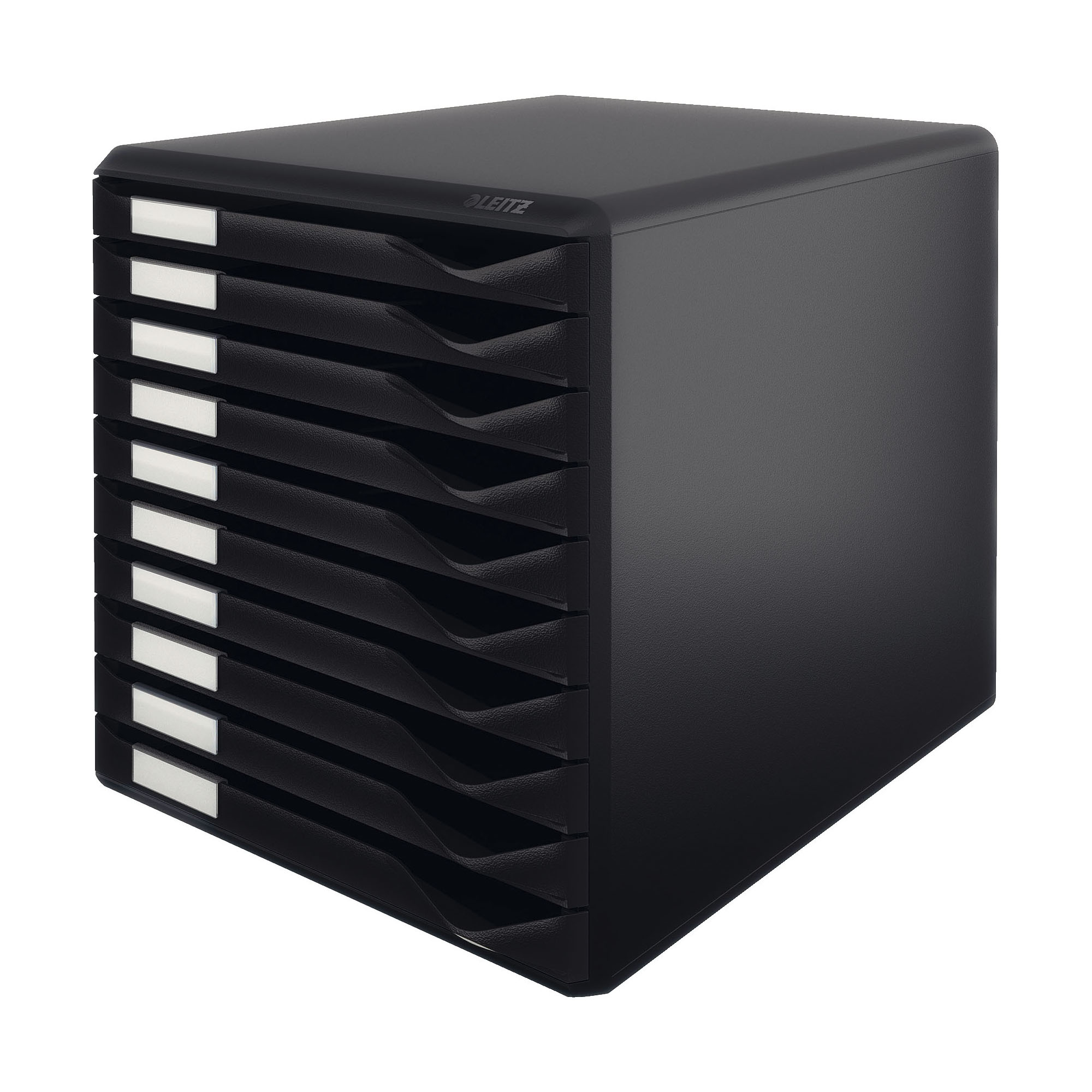 En noir sobre et élégant, ce module de classement 10 tiroirs Leitz associe praticité et esthétique pour une organisation professionnelle et efficace de votre espace de travail. À la fois compact et fonctionnel, le module Leitz est l'accessoire idéal pour une gestion ordonnée et rapide de vos documents au quotidien.