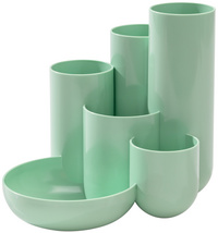 Description détailléeAvec 5 pots & 1 soucoupe pour petites pièces de différentsdiamètres et hauteurs, surface brillante, en polystyrènedimensions: (L)131 x (T)154 x (H)137 mm