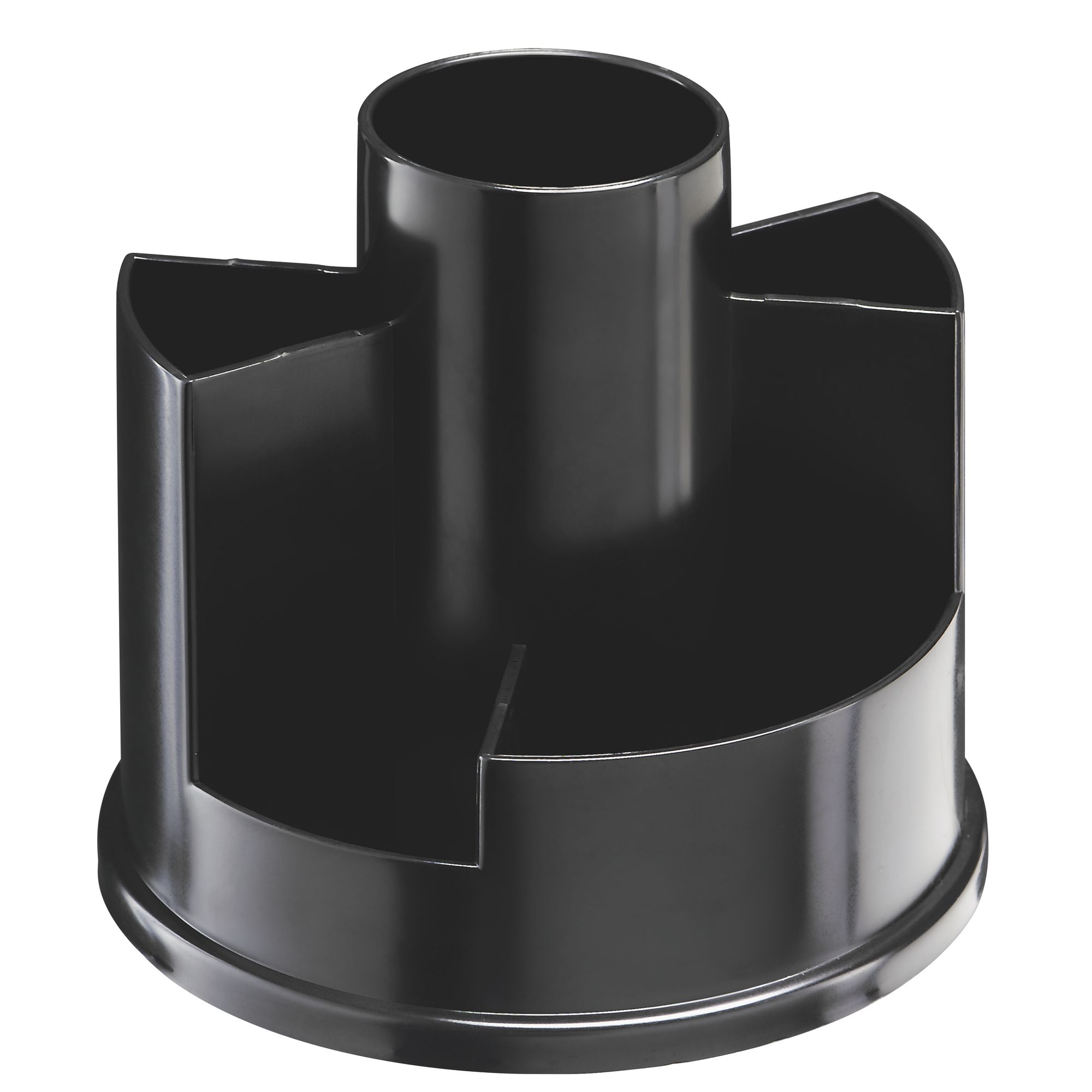 Description détailléePot à crayons central. 6 cases de rangement : 2 hautes, 2 moyennes et 2 basses.Dimensions : H 11 x Ø 12 cm. Plastique noir.