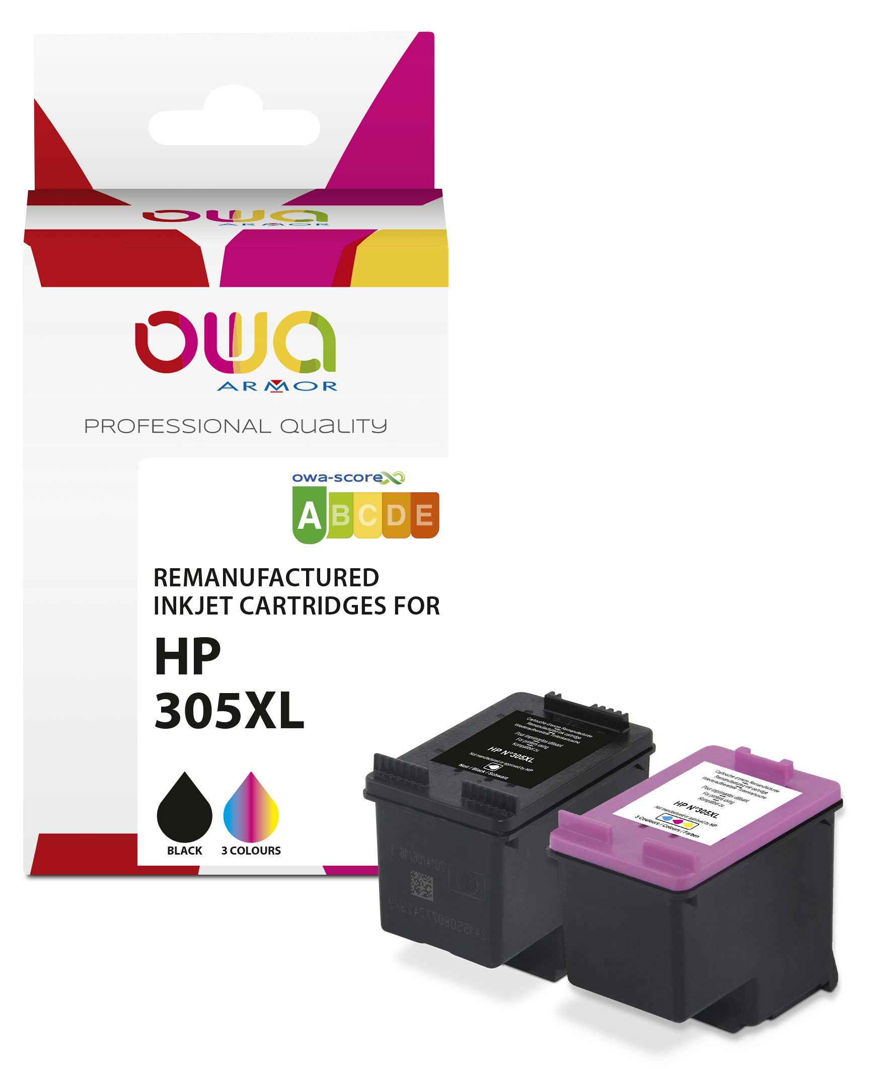 Pack de 2 cartouches d'encre remanufacturées OWA - haute capacité - Noir 3 Couleurs - pour HP 305XL
