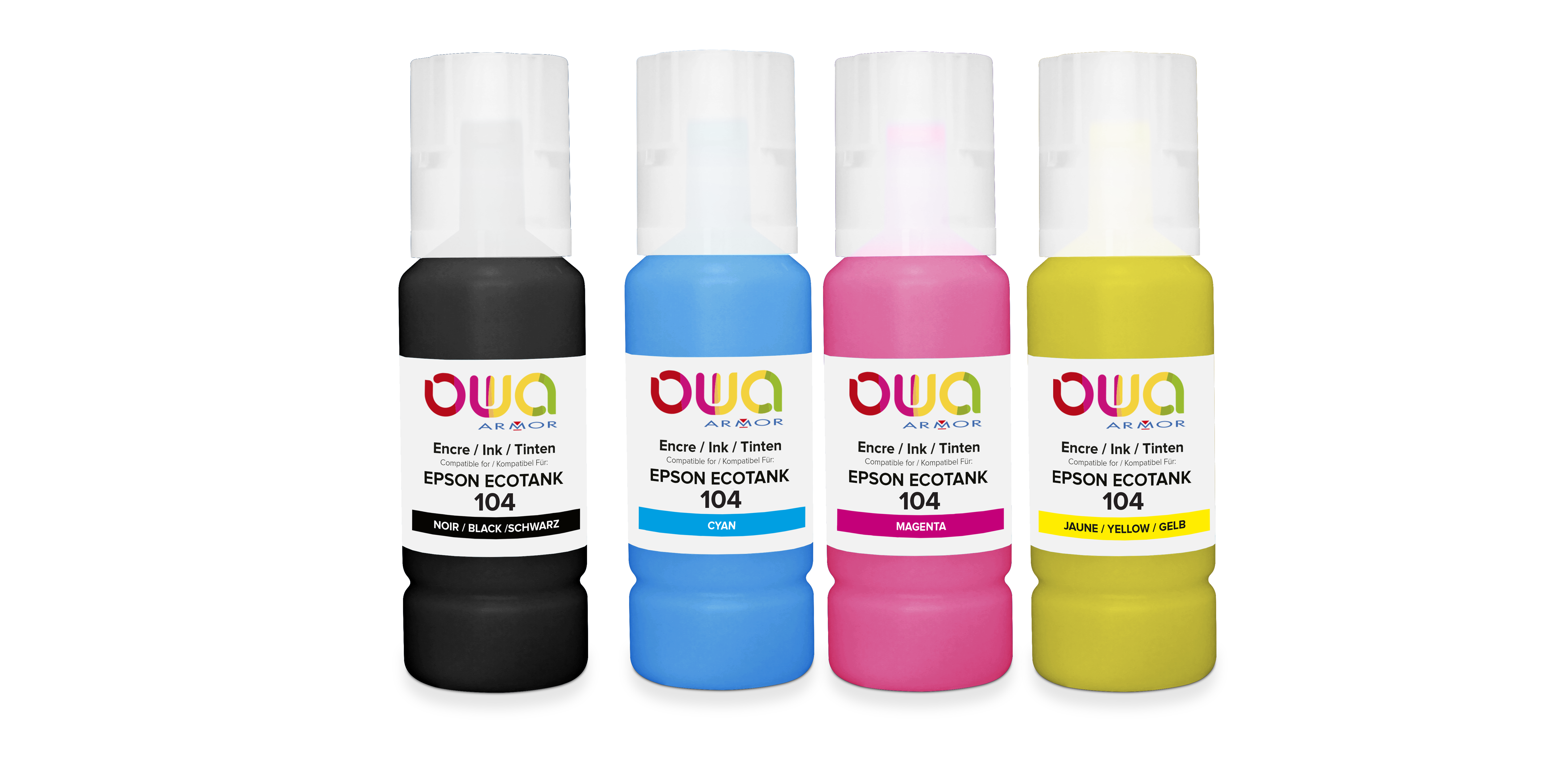 Autres cartouches avec les mêmes compatibilitésPack de 4 bouteilles d'encre compatibles OWA - standard - Noir Cyan Magenta Jaune - pour EPSON C13T00P140, C13T00P240, C13T00P340, C13T00P4401 avisà partir de47,95 € htBouteille d'encre compatible OWA - standard - Noir - pour EPSON C13T00P140à partir de13,50 € htBouteille d'encre compatible OWA - standard - Magenta - pour EPSON C13T00P340à partir de12,50 € htBouteille d'encre compatible OWA - standard - Jaune - pour EPSON C13T00P440à partir de12,50 € htBouteille d'encre compatible OWA - standard - Cyan - pour EPSON C13T00P240à partir de12,50 € htFlacon encre Epson 104 ecotank1 avisà partir de11,25 € ht