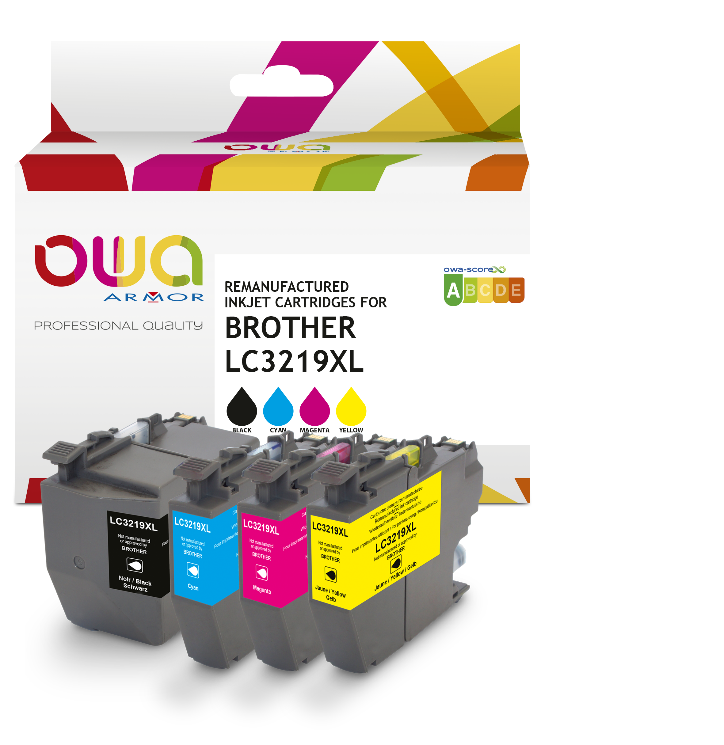 Pack de 4 cartouches d'encre remanufacturées OWA - haute capacité - Noir Cyan Magenta Jaune - pour BROTHER LC-3219XLBK, LC-3219XLC, LC-3219XLM, LC-3219XLY