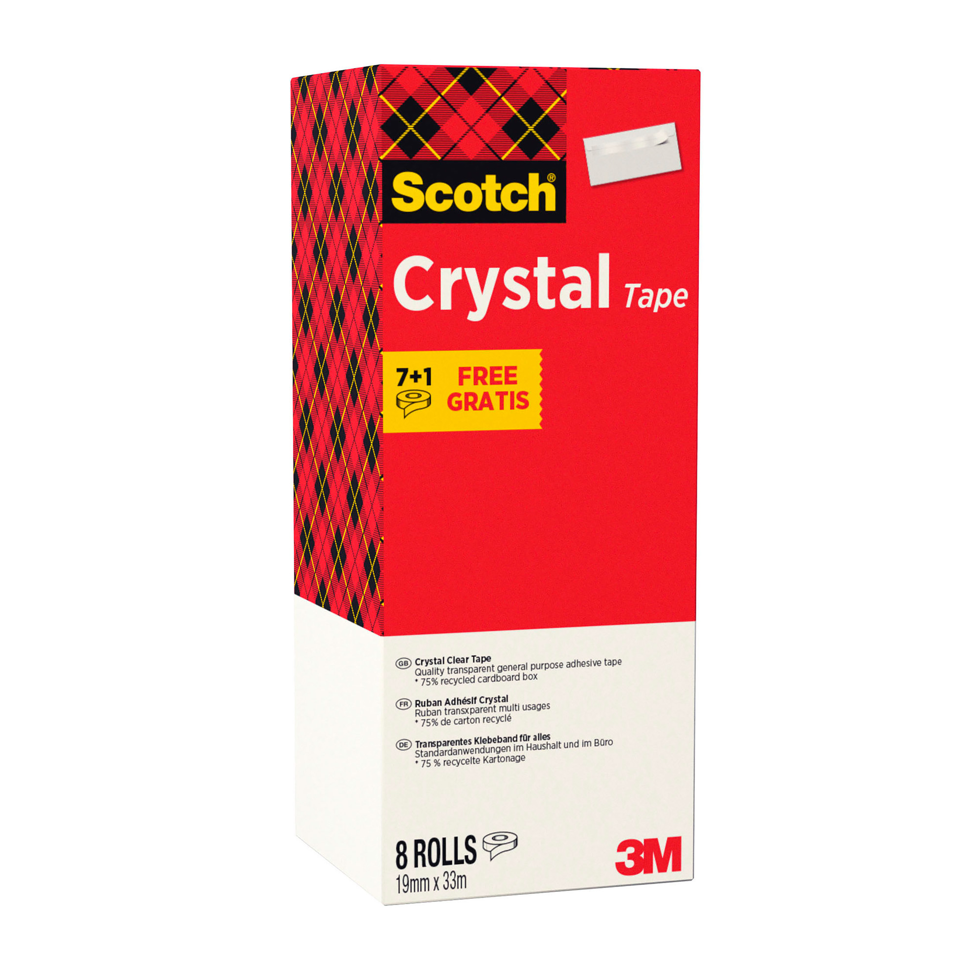 Description détailléeRuban adhésif brillant, haute transparence. Ne jaunit pas. Découpe à la main. Déroulement silencieux.En boîte carton individuelle 82 % recycléEn tour distributriceDimensions : L 33 m x l 19 mm, diamètre 60 mmPack de 7 + 1 rubans adhésif.