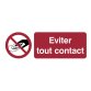 Description détailléePictogramme autocollante ‘eviter tout contact’. Format 200mm x 80 mm. Prix par pièce.Avez-vous besoin de plusieurs pièces? Envoyez-nous un e-mail pour un devis. Votre autocollant peut également être personnalisé avec le logo de votre entreprise,…