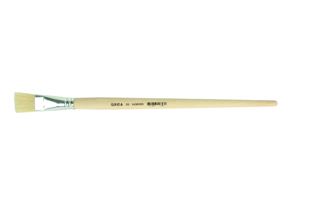Pinceau en soie de porc Qrea n° 20 - 20,7mm.Découvrez la polyvalence du pinceau en soie de porc Qrea n° 20, un outil indispensable pour tous les artistes et bricoleurs. Sa forme plate, ses soie de porc robustes et sa virole en tôle de haute qualité lui confèrent une excellente maîtrise et une grande longévité. Le manche en bois clair tient bien dans la main, même en cas d'utilisation prolongée. Idéal pour l'application de peintures, d'apprêts, de vernis, de colles et même de techniques telles que l'empâtement, ce pinceau peut être utilisé dans d'innombrables applications et rend tout projet plus soigné et plus professionnel.Caractéristiques :* Type : pinceau n° 20.* Largeur du pinceau : 20,7mm.* Longueur des poils : 27mm.* Type de poils : soie de porc* Forme : plate.* Manche : bois brut avec manche en moucheté rugueux.* Virole : tôle de haute qualité.* Convient pour : tous types de peintures, apprêts, vernis, colles et techniques d'empâtement.* Origine : fabriqué en Allemagne.