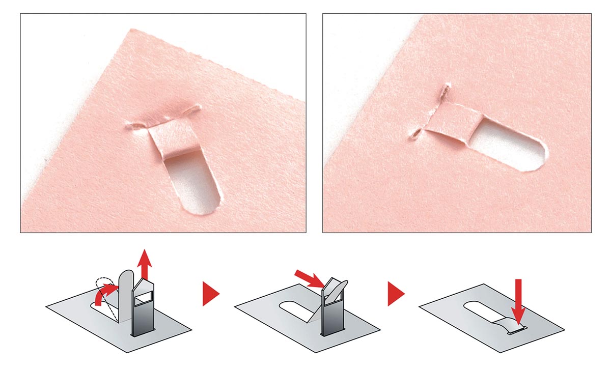 Agrafeuse qui peut relier jusqu'à 5 pages ensemble. Plus sûr : pas besoin d'agrafes et donc impossible de se blesser. Déchiquetage plus rapide et plus facile des documents car il n'y a pas d'agrafes. Respectueux de l'environnement : les pièces colorées sont fabriquées à partir de plastique recyclé et il n'y a pas d'utilisation supplémentaire d'acier.