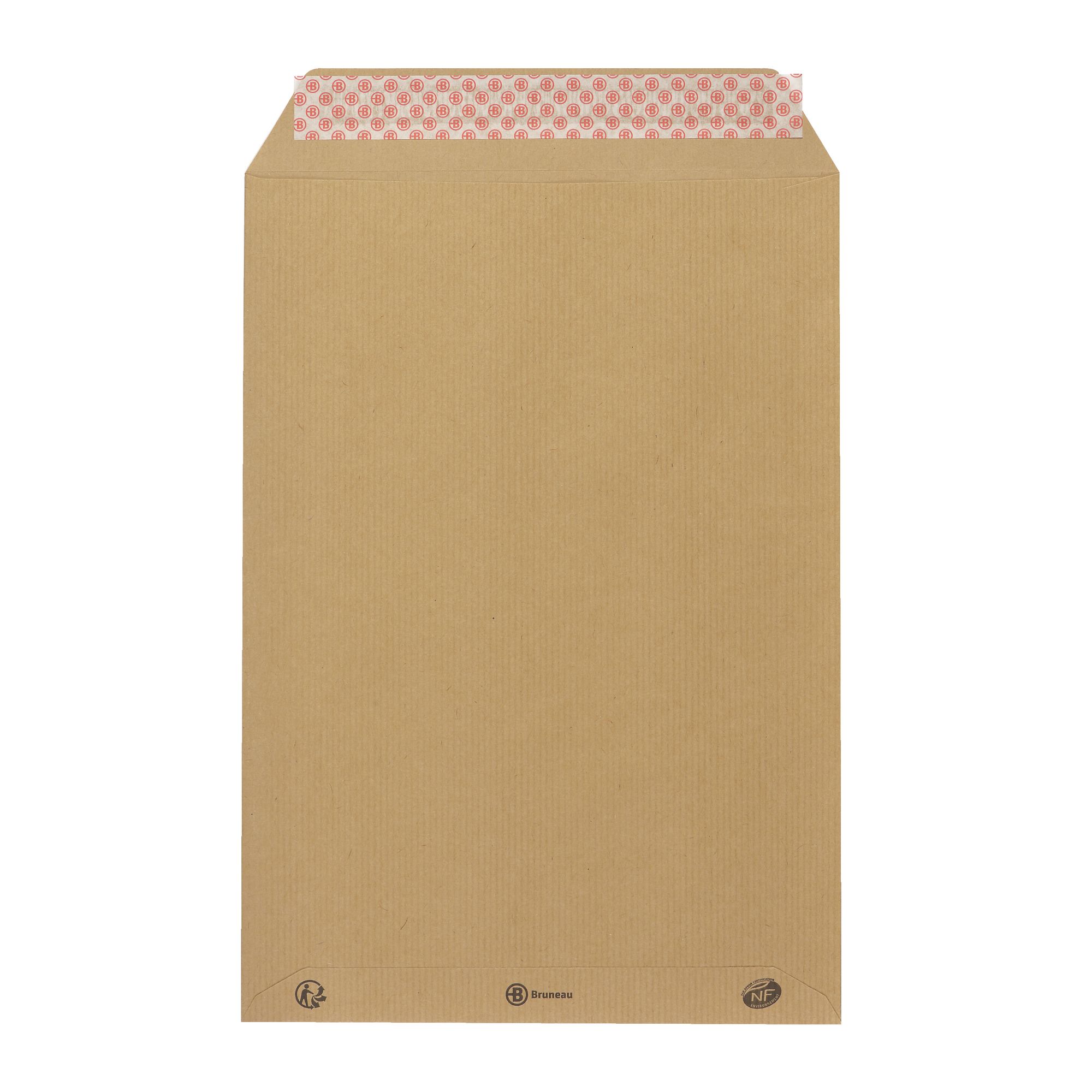 Pour une expédition sécurisée de vos courriers, optez pour la pochette kraft de Bruneau. Elle a été fabriquée en kraft milleraie brun 90 g pour garantir une forte résistance aux déchirures. Que ce soit pour l’envoi d’une facture ou d’un diplôme, cette pochette sans fenêtre et sans soufflet saura répondre à vos besoins. Sa fermeture autocollante avec bande protectrice et son opacité assurent la protection de vos dossiers. Ce modèle a été conçu pour les documents jusqu'au format A4, et est proposé dans un paquet contenant 250 pièces. Une solution adaptée à vos besoins !