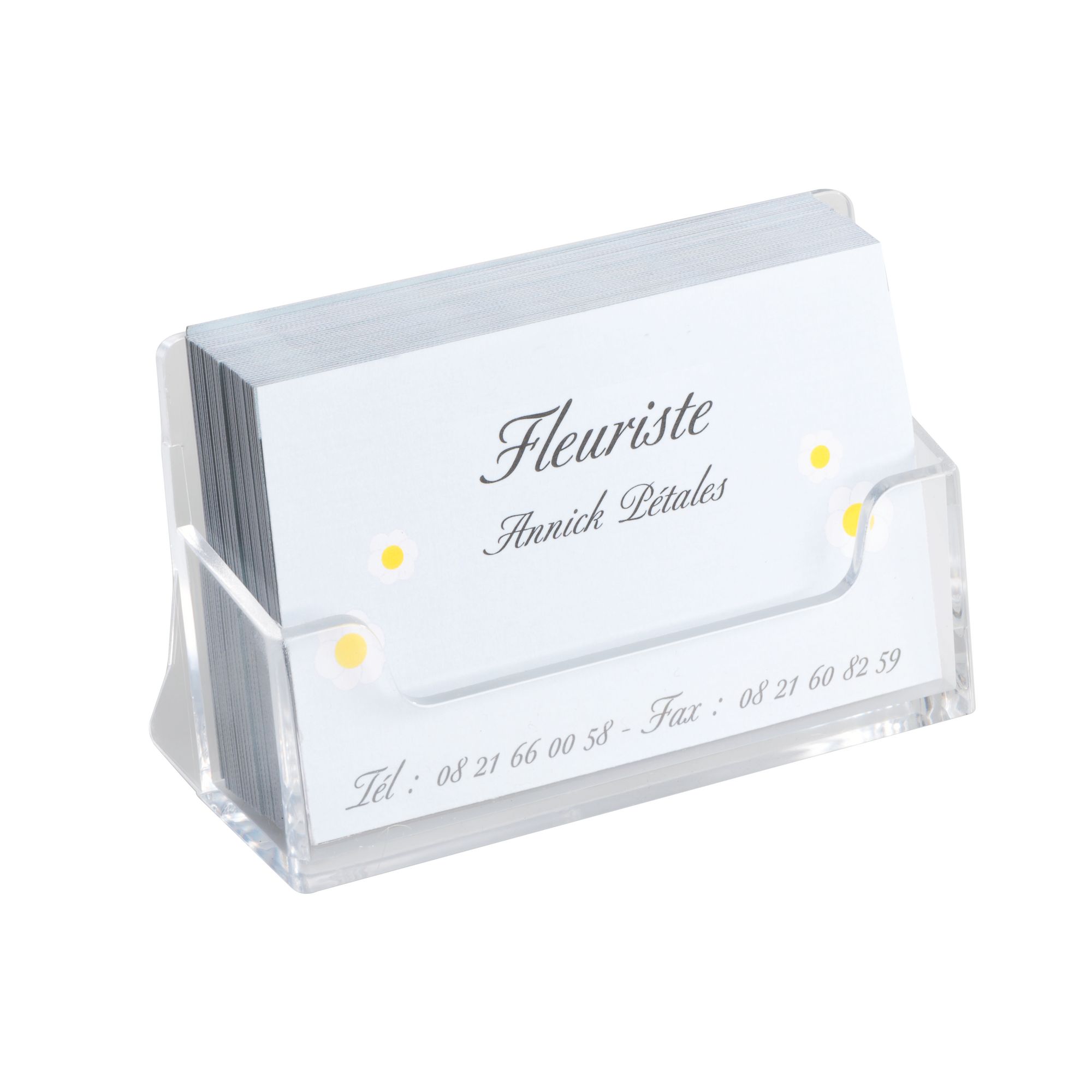 Avec ce présentoir de table 1 case, vos cartes de visite vont être à portée de la main de tous vos visiteurs. Cet accessoire est fabriqué dans en polystyrène cristal rigide transparent qui améliore la visibilité des documents.