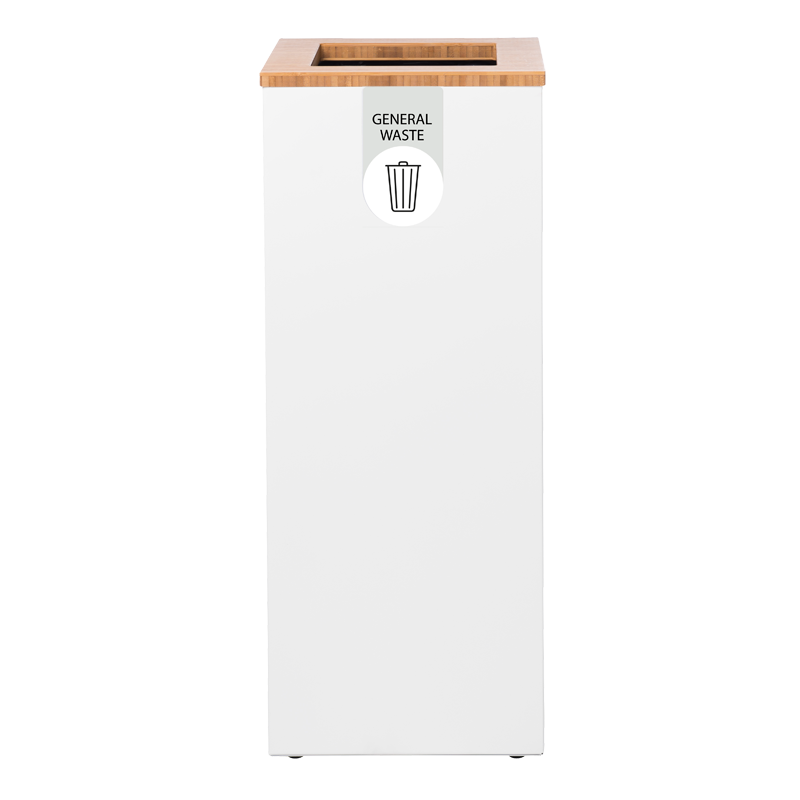 Station de tri sélectif en acier galvanisé avec couvercle ouvert élégant et durable en bambou, avec indication de flux colorée et étiquette. Facile à vider. Modulaire et connectable. Les éléments étant connectés au moyen d'aimants, les poubelles peuvent être attachés dans le sens de la longueur mais également en carré ou rectangle. Ceci rend le Paxa très flexible et une solution idéale pour le tri des déchets à n’importe quel endroit.