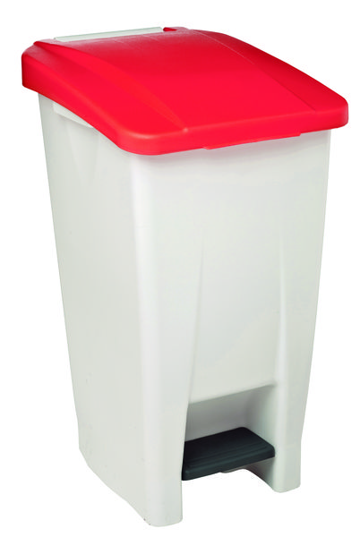 Poubelle en polyéthylène avec couvercle rabattable. Large pédale en façade pour éviter tout contact avec le couvercle. Maintien du sac par tension. Couvercles de couleur pour la collecte sélective. Capacité 80 litres. Dimensions H 700 x L 490 x P 380 mm.