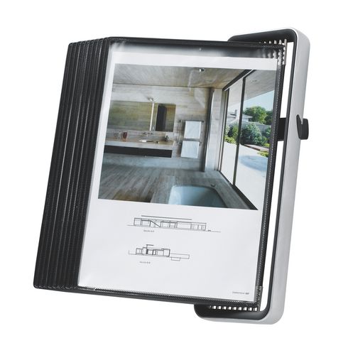 Vous voulez accéder rapidement à vos documents sans devoir fouiller dans les classeurs ? Ce protège-documents pivotant mural Djois by Tarifold Veo fera certainement l’affaire :