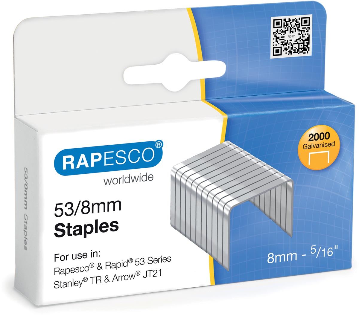 Rapesco agrafes galvanisées 53/8 mm, boîte de 2000 agrafes
