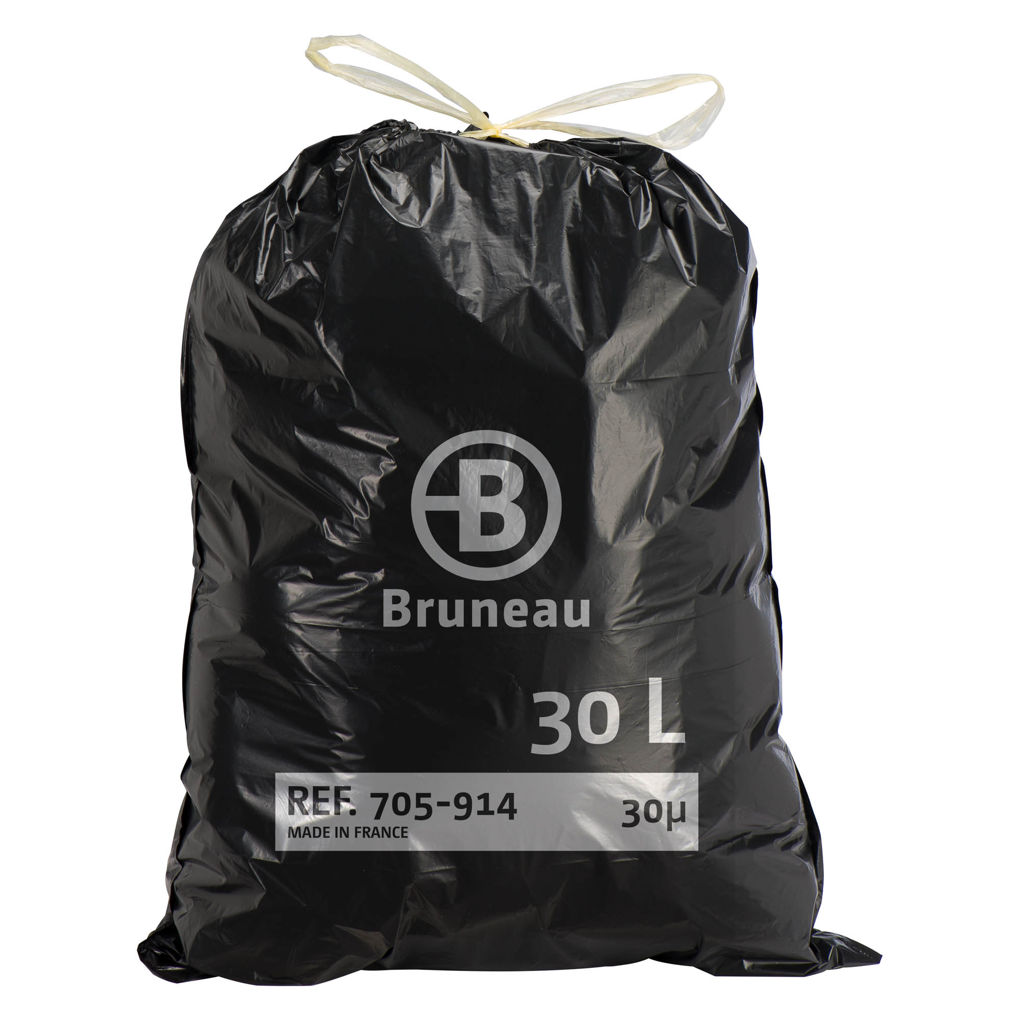 Description détailléeRéalisés en polyéthylène recyclé 30 microns, ces sacs poubelle Bruneau sont à la fois résistant à la déchirure et à la perforation.Solidité accrueFermeture par lien coulissantDimensions H 65 cm x Ø 35 cm.Capacité 30 L.Colis de 100 sacs (5 rouleaux de 20 sacs.).Ce produit est écoresponsable car il a été fabriqué à base de 100 % de matériau recyclé.