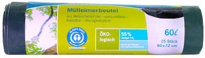 Description détailléeDimensions: 600 x 720 mm, film multi-couches, 30 microns, extra solide, résistant, étanche, 100% à base de PE-LD écologique et recyclé, contenu: 15 sacs par rouleau (211001 / 2023981 / 9100000780)