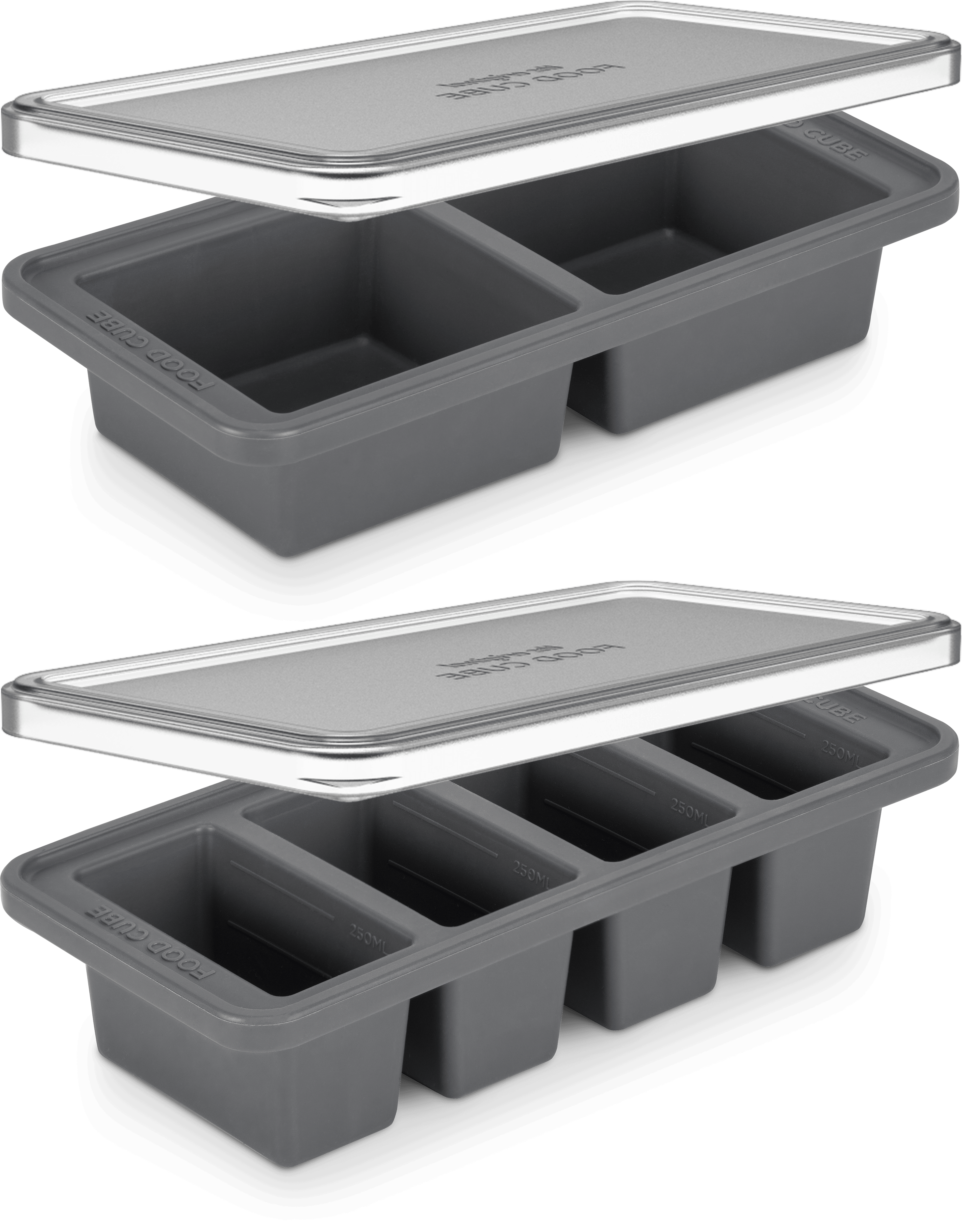 Rapide, savoureux et facile. La préparation des aliments est plus facile que jamais. Cuisinez, remplissez, congelez et réchauffez facilement et rapidement la portion parfaite. Grâce au matériau ultra robuste et flexiblede de ce foodcube, mettez la portion parfaite dans les cubes en un rien de temps. Convient pour le congélateur, le four et le lave-vaisselle. Gris, boîte de préparation de repas, boîte de congélation, boîte de conservation, plateau en silicone 100% avec couvercle.