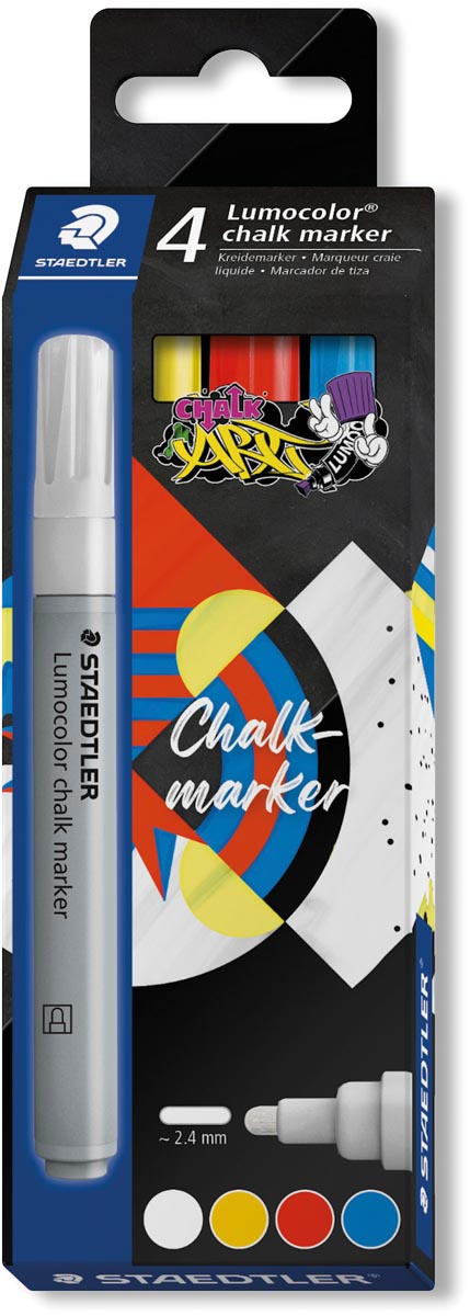 Optez pour le Lumocolor Marqueur à la craie chalk marker, étui de la marque Staedtler, un outil de marquage innovant et polyvalent qui vous permettra de réaliser des tracés de qualité sur diverses surfaces lisses. Avec sa pointe ogive d'environ 2,4 mm de largeur, ce marqueur vous offre un tracé précis et net pour une écriture claire et lisible.