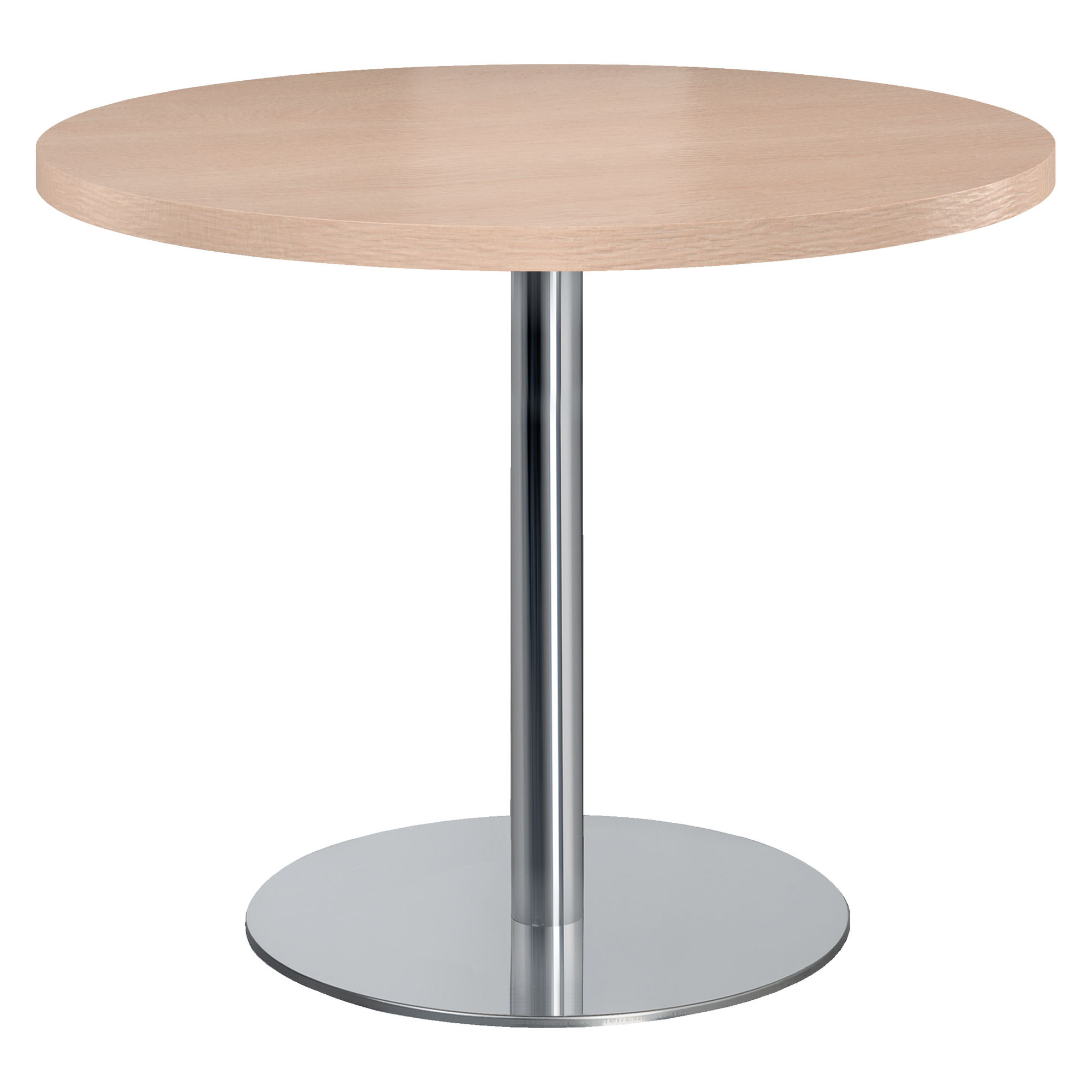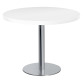 Munie de chants en ABS de 2 mm d’épaisseur assortis au décor, la table de réunion dispose d’un piétement central en métal avec embase plate pour les tables Ø 100 cm.
