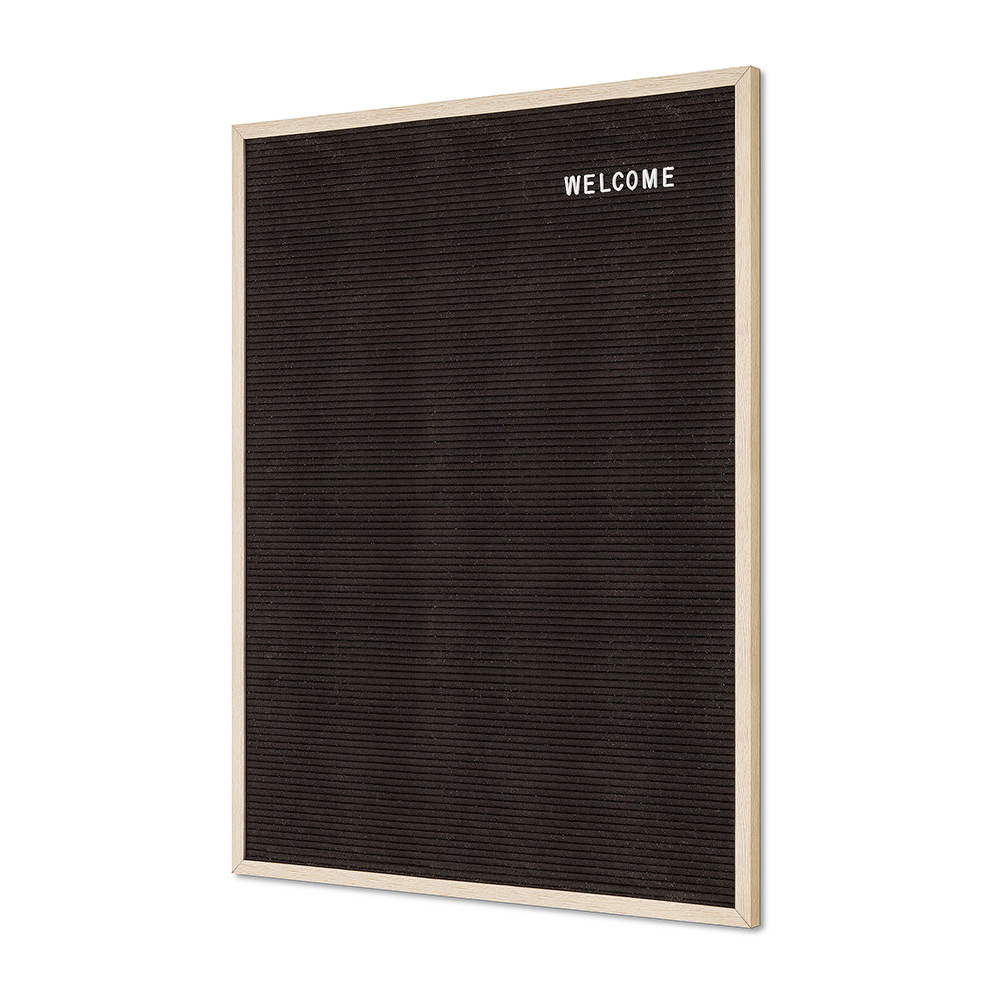 Panneau d'affichage élégant. Le panneau d'affichage à lettres présente un style rétro chic avec un cadre en bois clair. Avec les 450 lettres en plastique blanc incluses, vous pouvez toujours exprimer clairement vos idées par écrit. Elles se fixent facilement, permettant de modifier rapidement le contenu. La surface unique garde les lettres bien en place. Installation murale ou sur comptoir. Vous pouvez fixer votre panneau au mur ou le poser sur un bureau ou comptoir. Il est disponible en trois tailles différentes ; les cadres de 30 x 30 et de 40 x 60 cm sont adaptés à la fois pour être suspendus au mur ou posés. Le format 60 x 80 cm est réservé à l'installation murale. Choisissez votre teinte favorite. Sélectionnez un fini attrayant : effet boisé ou noir. Pour une esthétique plus authentique, privilégiez le cadre en bois ; pour un aspect plus élégant et raffiné, optez pour le cadre noir. Faites votre choix ! Parfait pour les réceptions et les bureaux. Ajoutez votre menu, un message d’accueil, une citation ou un avis sur le panneau à lettres. Idéal pour les messages temporaires dans un café, au bureau ou même à domicile. Un ensemble supplémentaire pour plus de possibilités. Multipliez vos manières de vous exprimer en ajoutant cet ensemble à votre commande. Grâce à 2 planches de 150 caractères additionnels, vous aurez les mots supplémentaires pour formuler clairement toutes vos idées et promotions. Exploitez le pouvoir des mots !